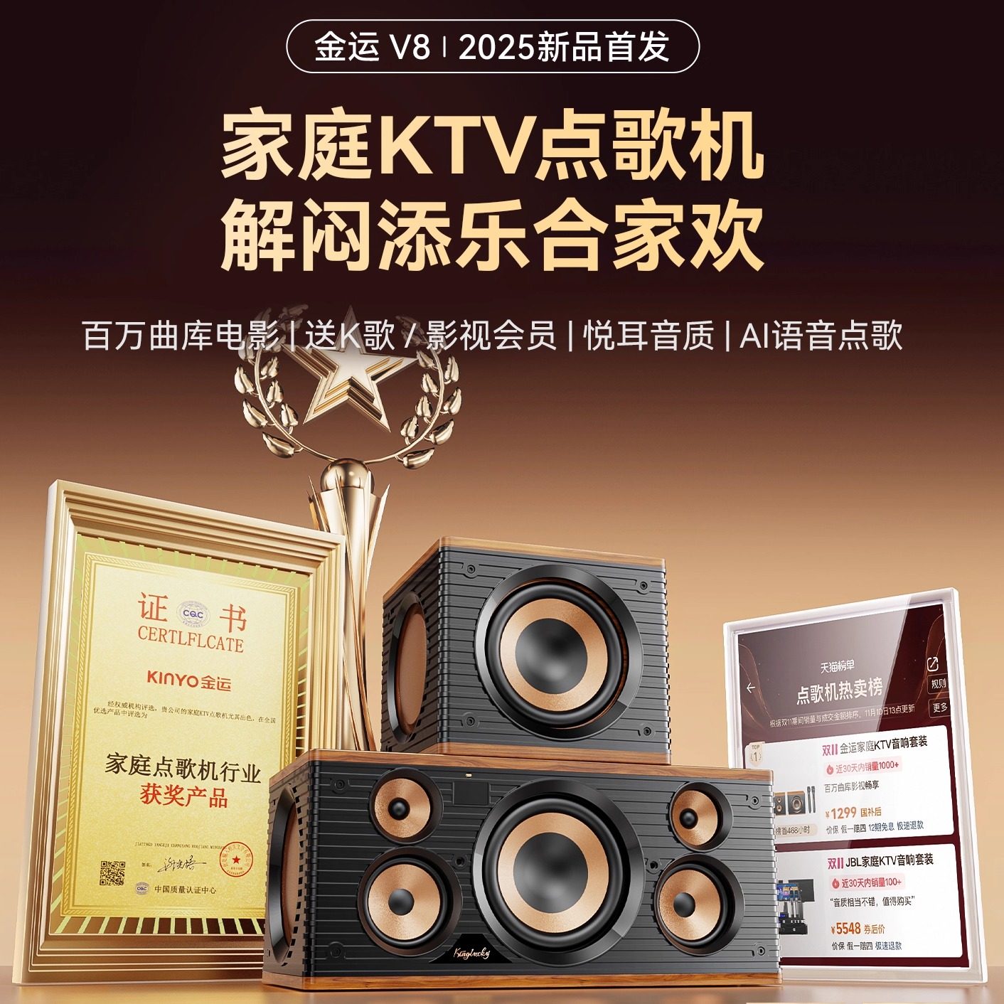 金运家庭KTV音响套装一体麦克风智能点歌机K歌无线话筒唱歌卡拉OK