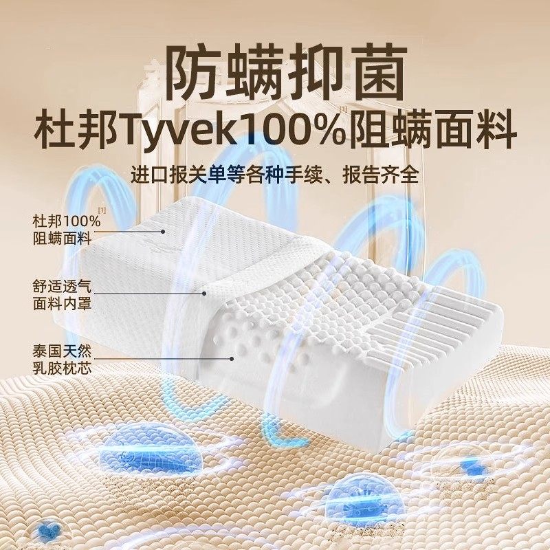 泰国安睡枕头家用单人橡胶枕芯乳胶成人护颈椎助睡眠男女改善睡眠