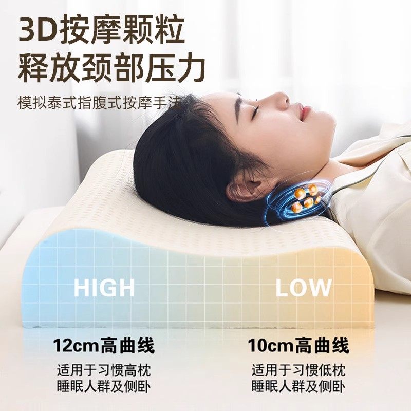 水星家纺泰国原液乳胶枕头枕芯呵护颈椎枕按摩高低枕学生宿舍枕