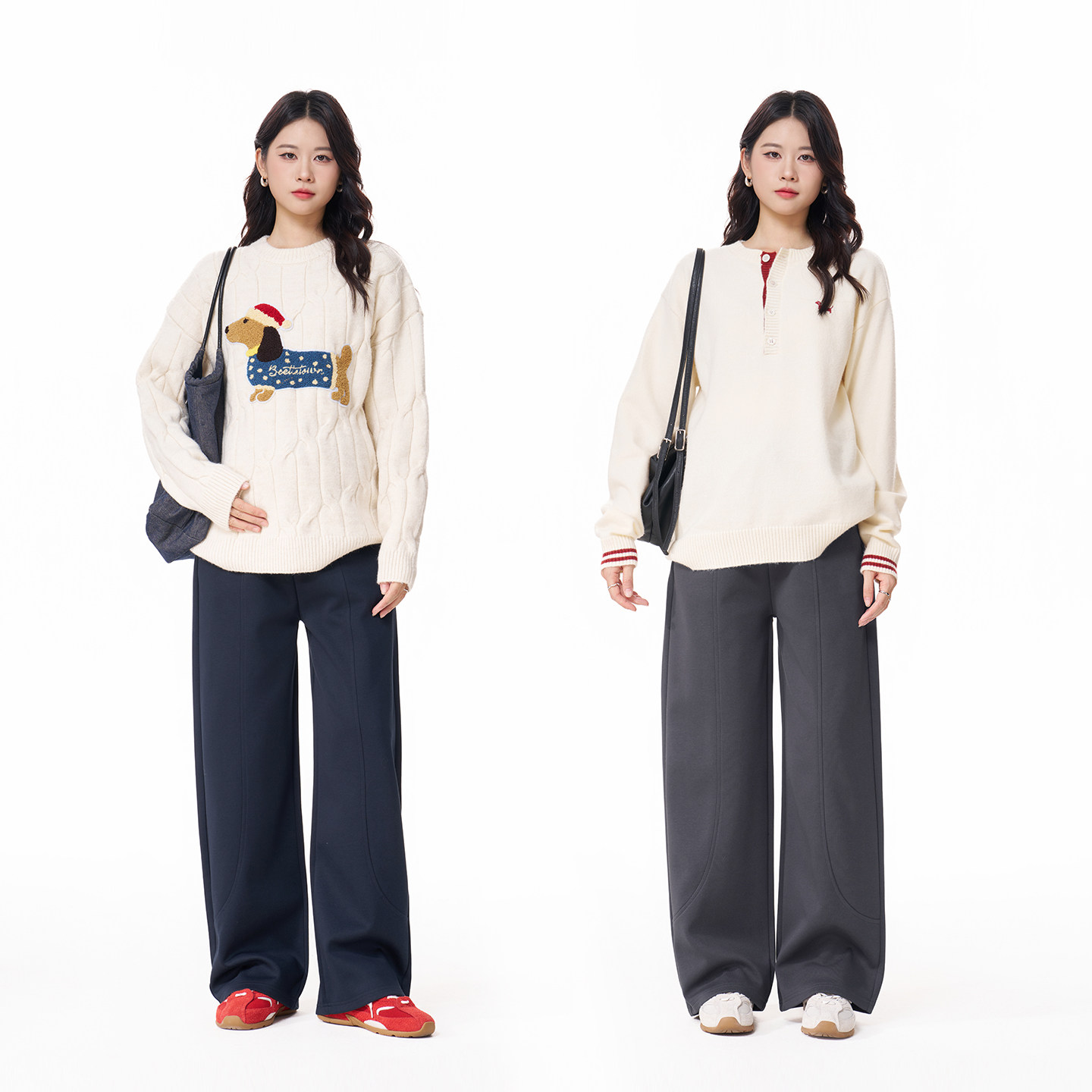 英氏孕妇休闲裤子秋冬外穿加绒保暖阔腿裤2025新款显瘦百搭直筒裤