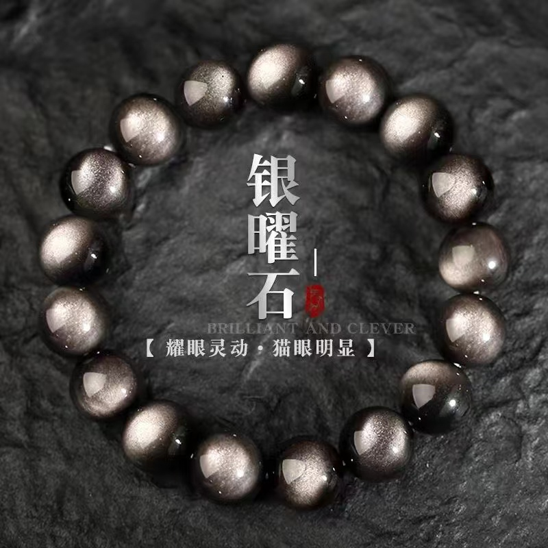8A级纯天然双眼银耀石金耀石手链男女水晶佛珠手串招财转运情侣款