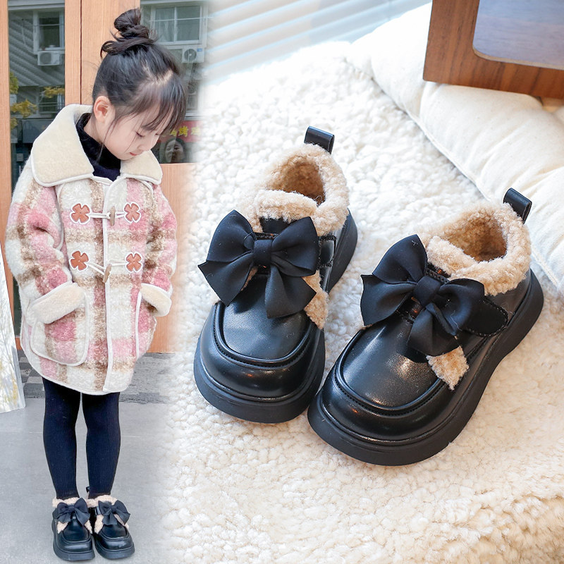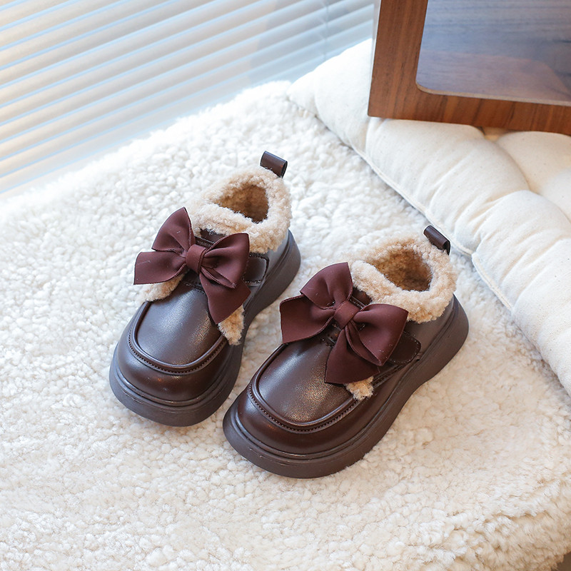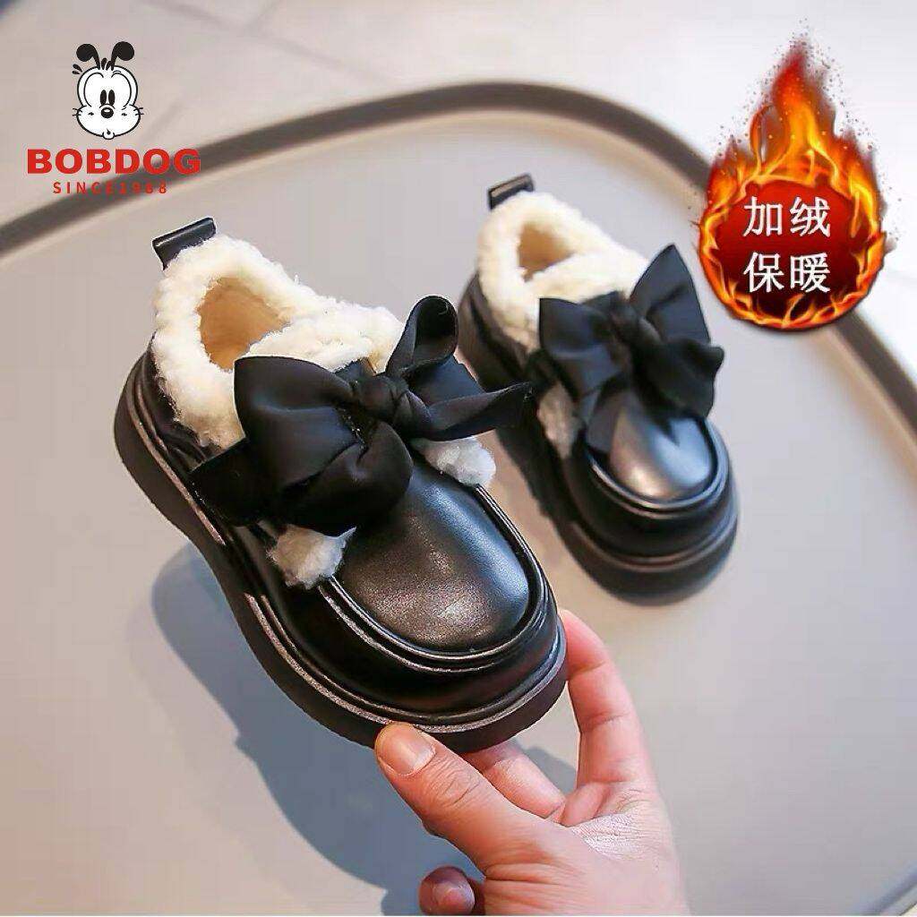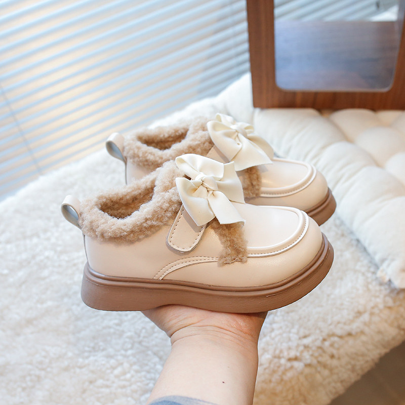 巴布豆女童加棉保暖皮鞋棉鞋2025新款魔术贴防滑休闲百搭软底童鞋