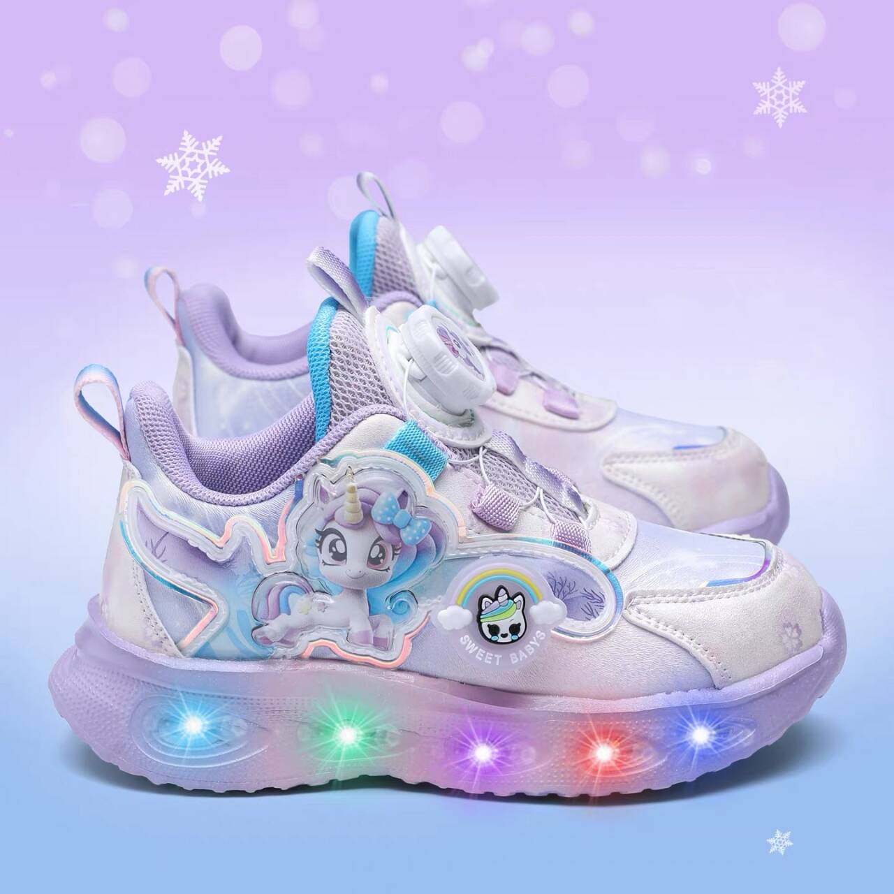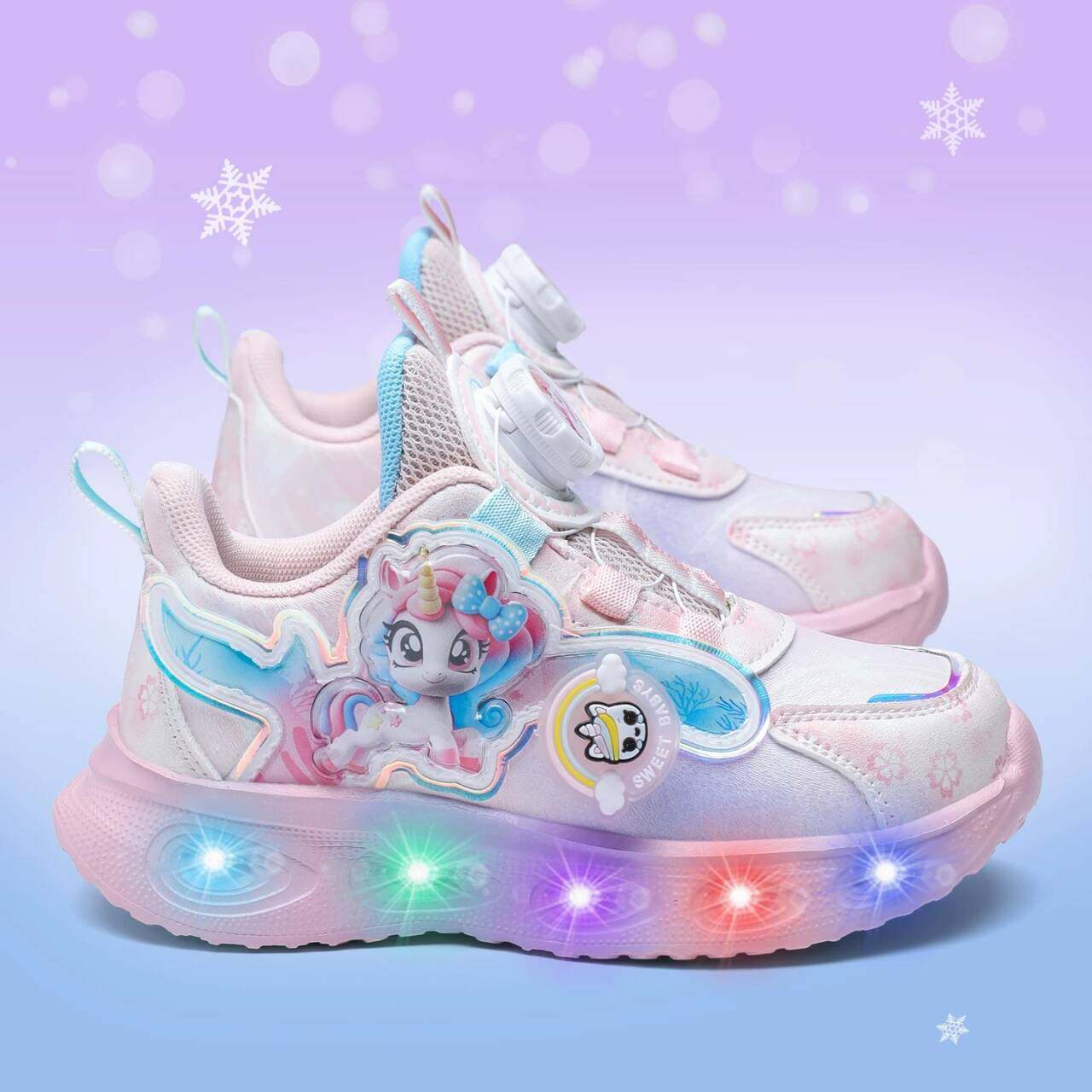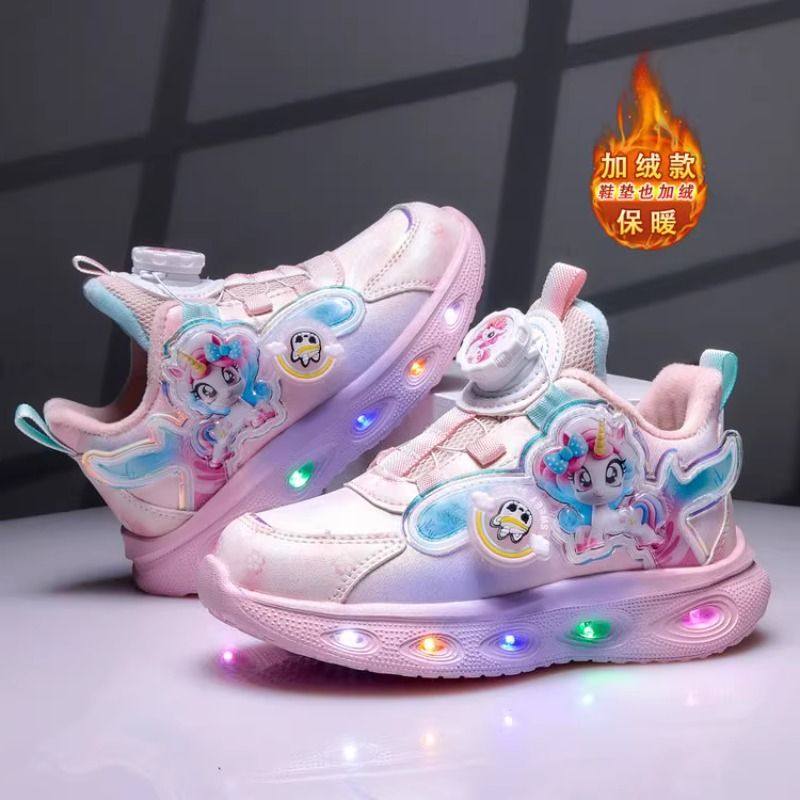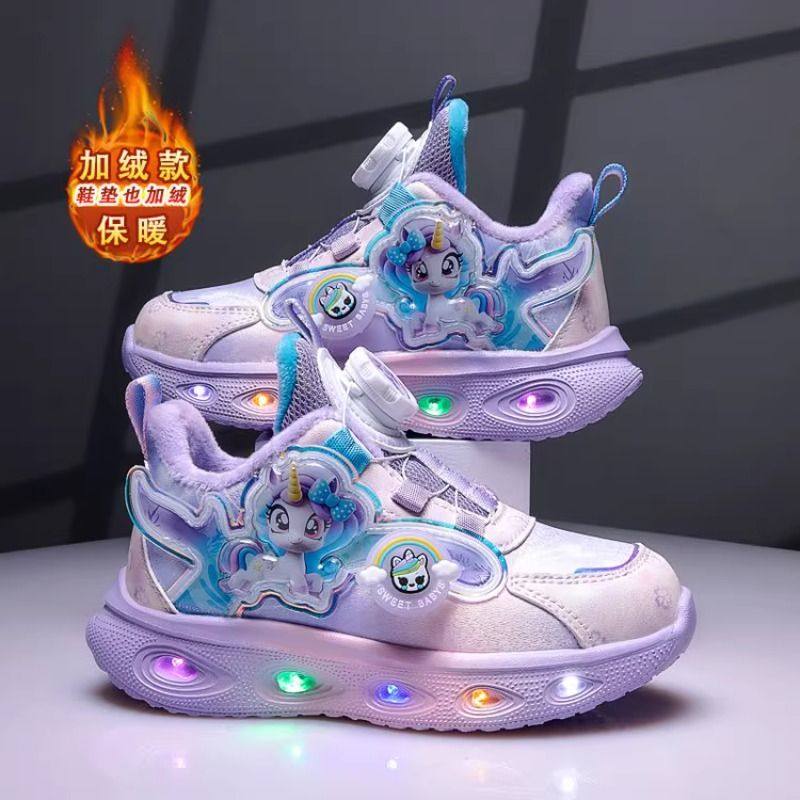 巴布豆真皮小马宝莉加绒保暖女童鞋冬季新款儿童运动鞋发光鞋鞋子