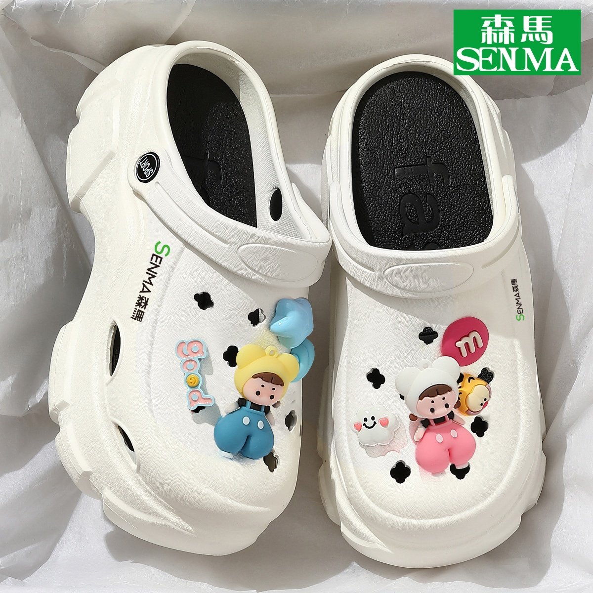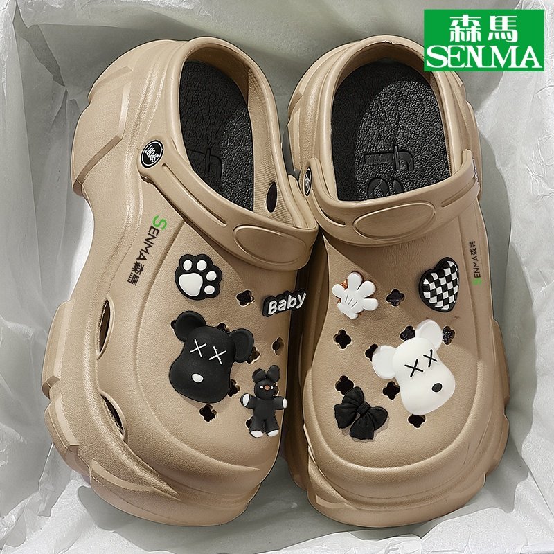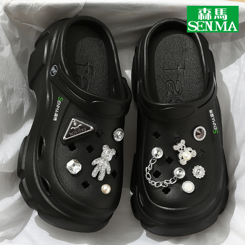 森马厚底洞洞鞋女2025新款夏增高黑色外穿绝美包头凉鞋女款SENMA
