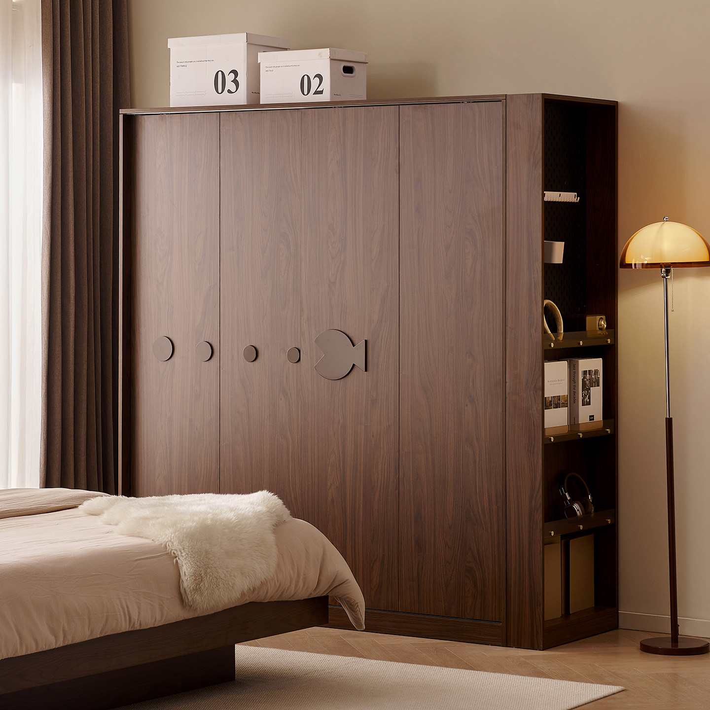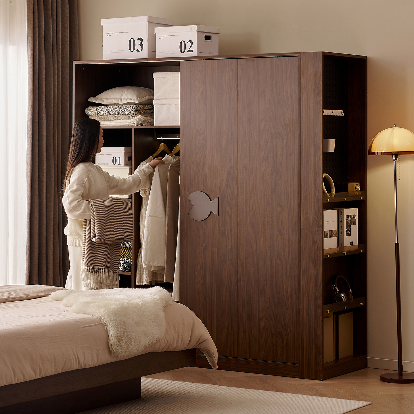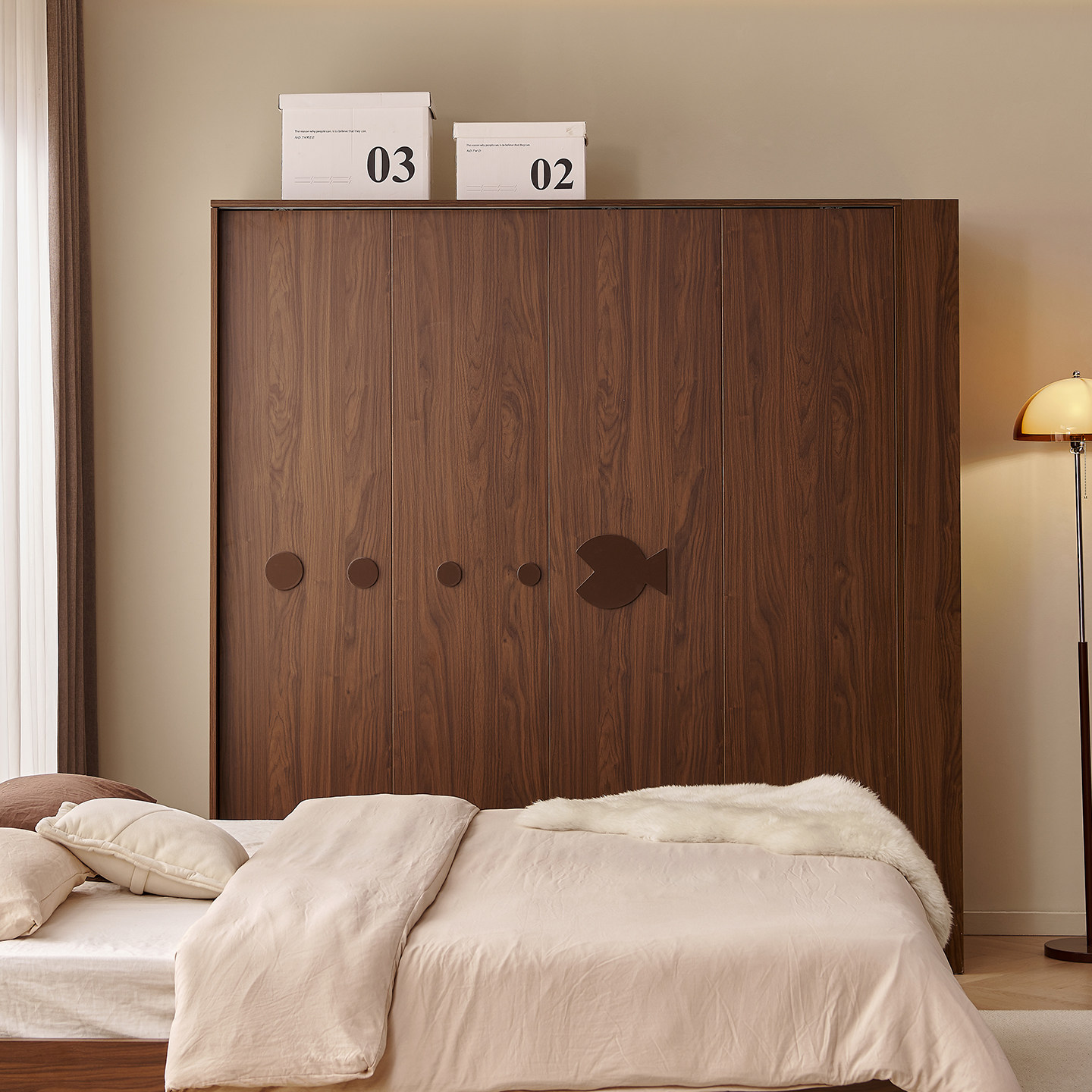 木兜家具泡泡鱼衣柜黑胡桃木色移门衣柜子家用卧室实木推拉门衣橱