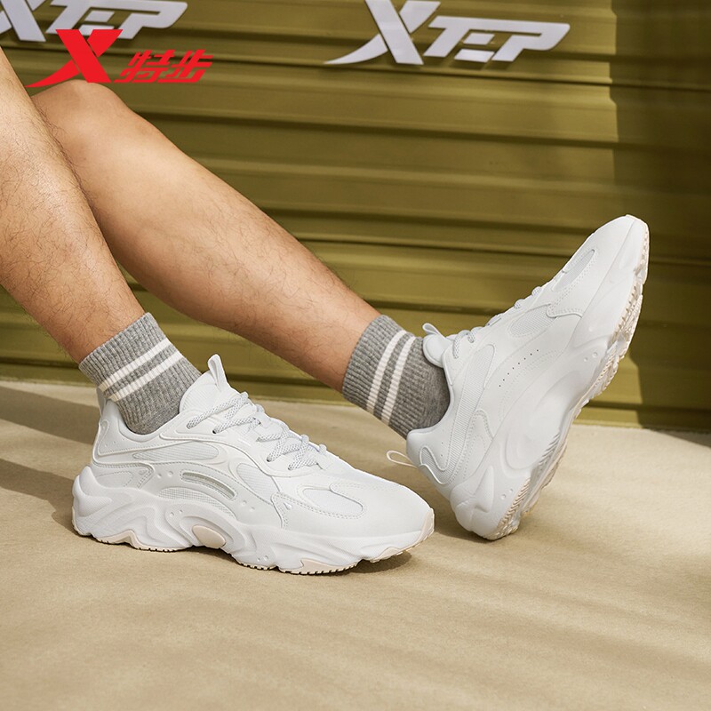 王鹤棣同款丨特步巴斯克2休闲鞋女复古老爹鞋增高运动鞋男鞋棉鞋