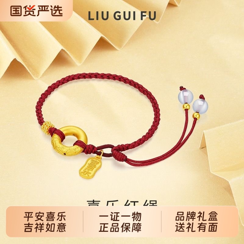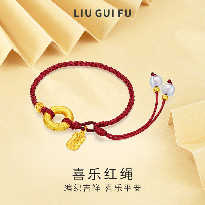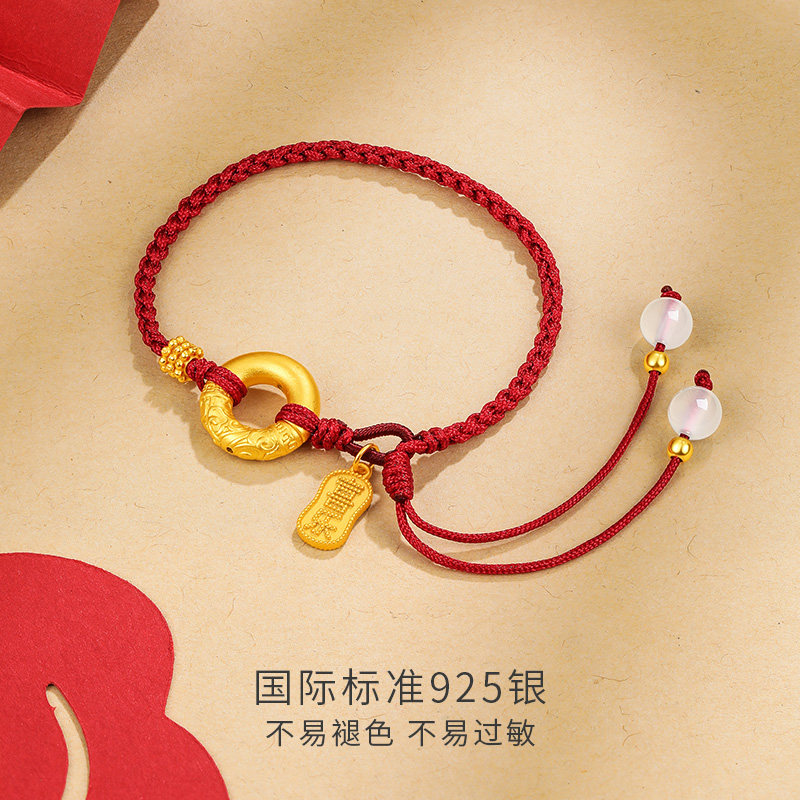 六桂福珠宝S925纯银平安扣红绳手链本命年编织手绳情侣圣诞礼物