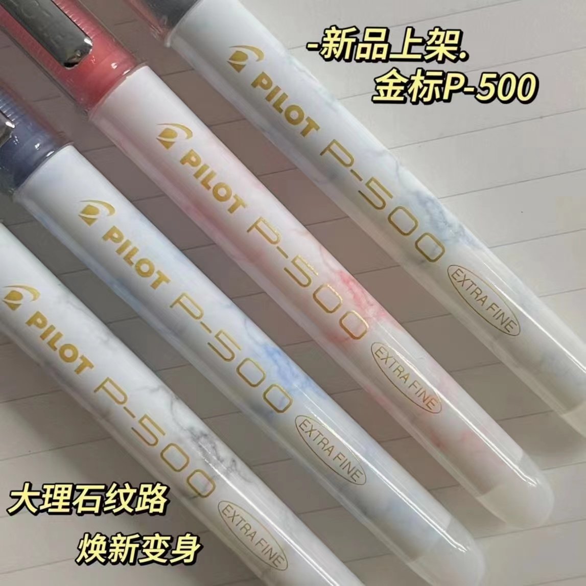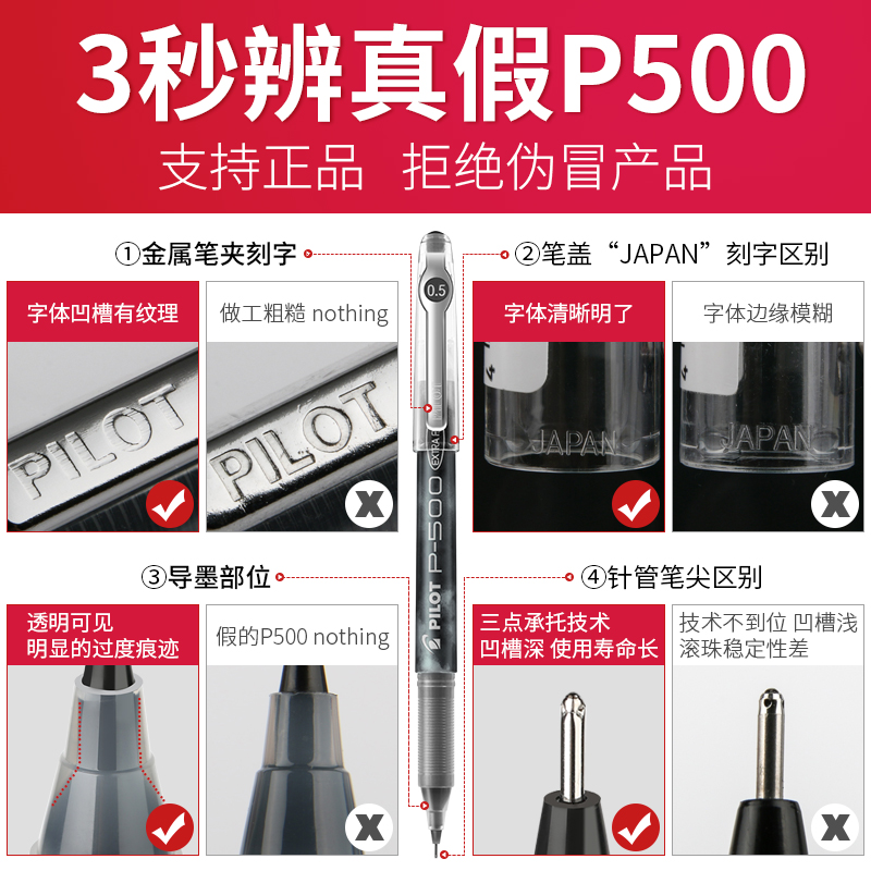 日本进口Pilot百乐笔P500中性笔金标黑色0.5mm针管考试专用水笔学生文具中高考签字笔学霸刷题笔大理石纹路