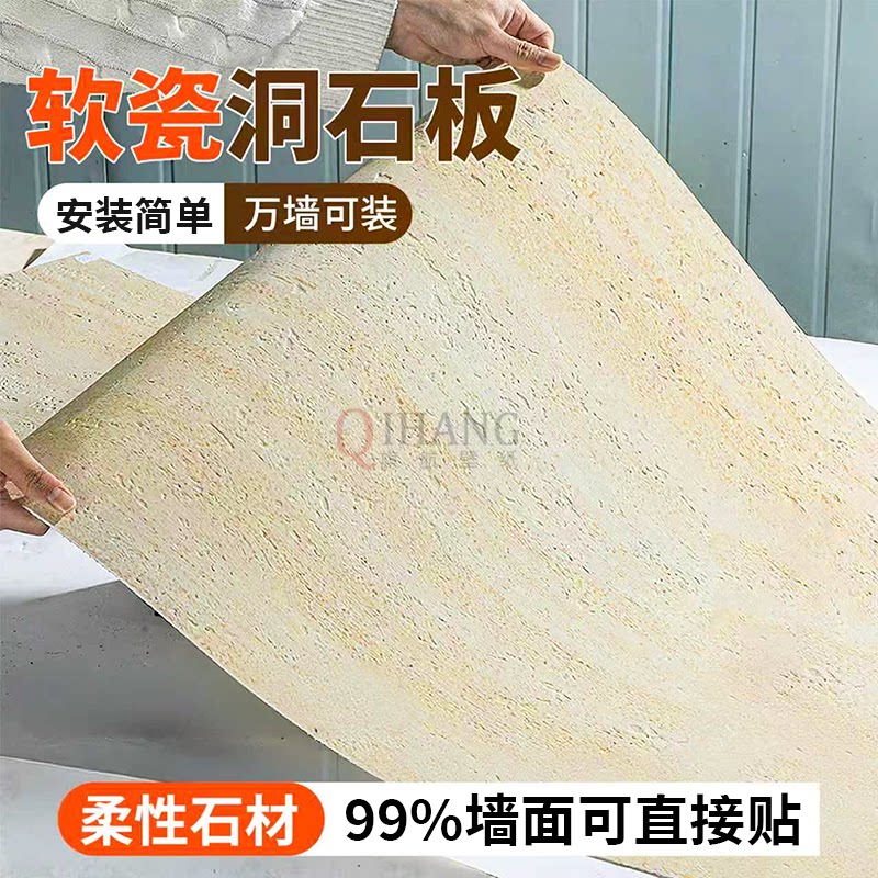 墙贴自粘软洞石大理石装饰墙纸防水耐磨贴纸仿罗马软石背景墙贴纸