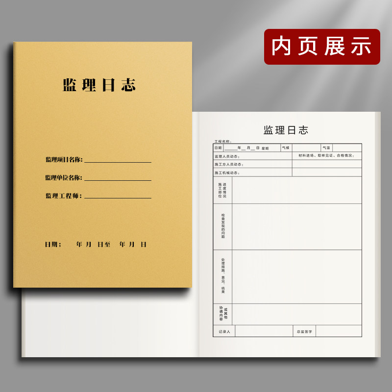监理日志记录本定制建筑工程安全监理日志装修A4大本施工日记本工地工作手册进度本通用安全日志登记本可定制