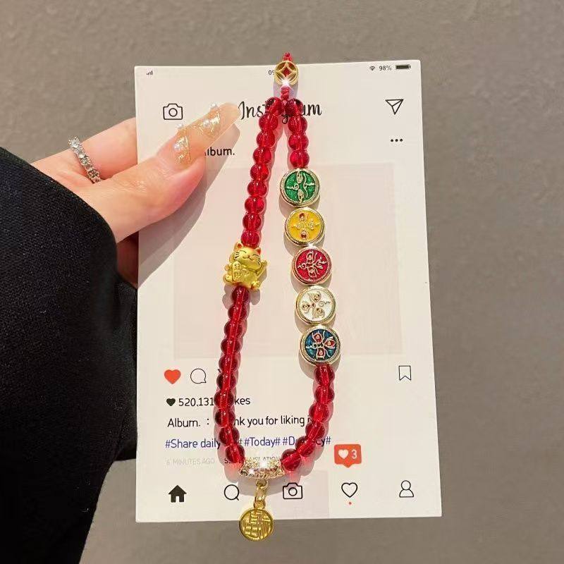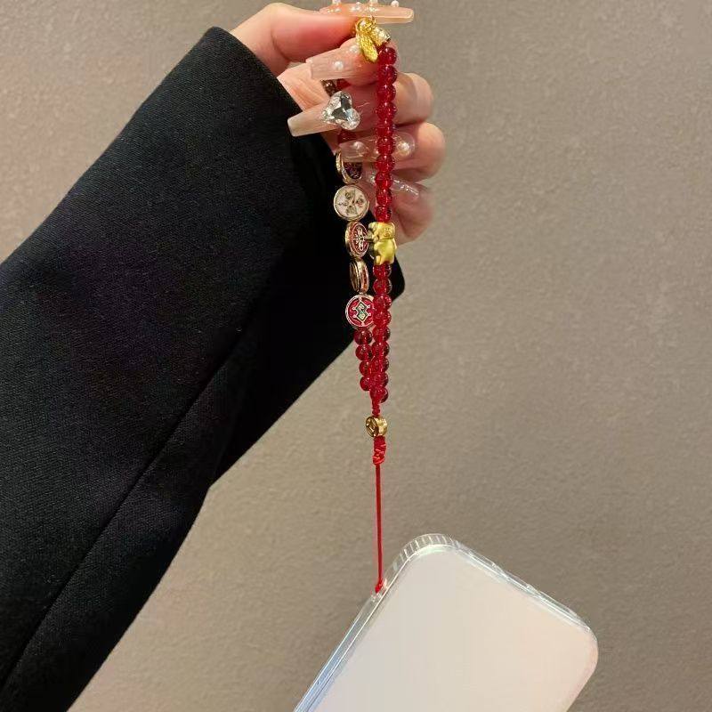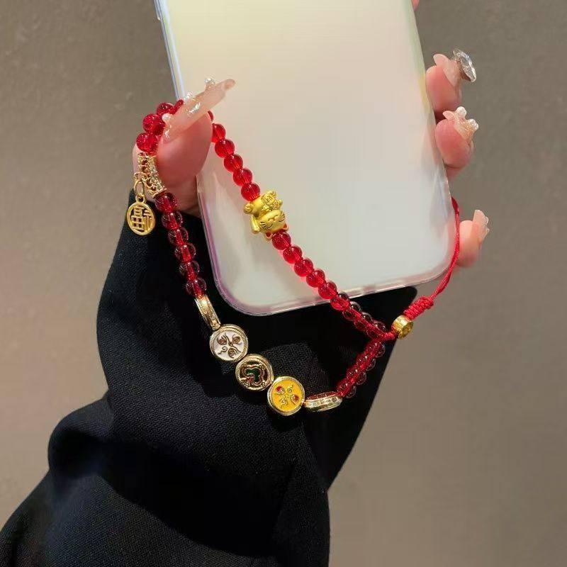 新中式招财猫五路财神手机链串珠手机挂饰挂件其他dly饰品配件