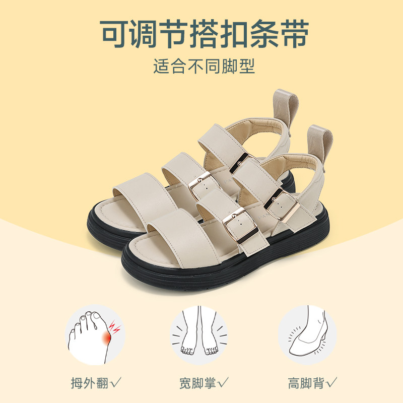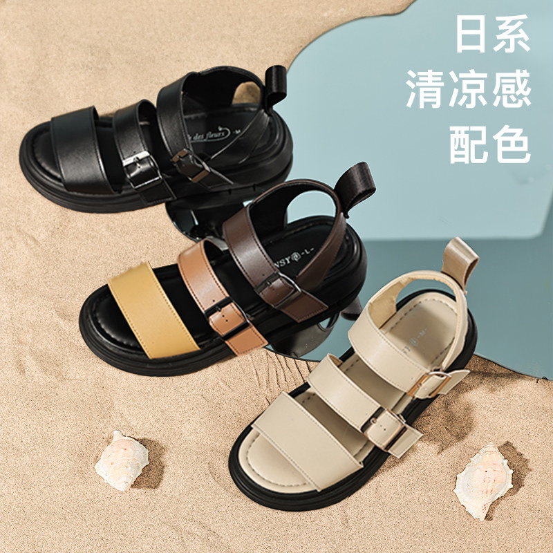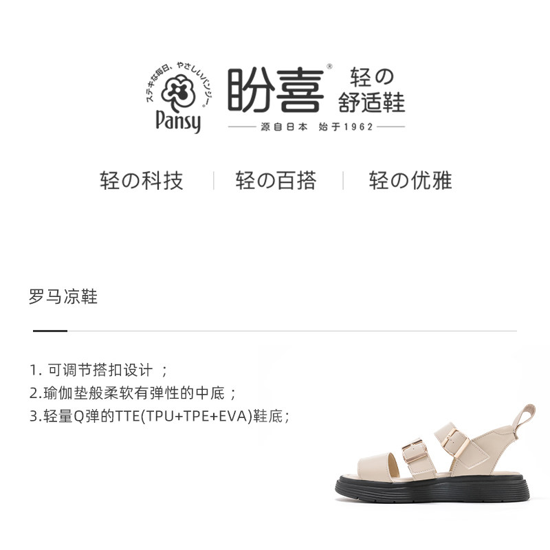 Pansy盼喜日本凉鞋夏季女鞋平底轻便舒适透气防滑时尚罗马凉鞋