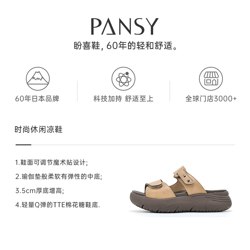Pansy日本新款女士凉鞋轻便平底防滑休闲妈妈鞋拇外翻女鞋夏季