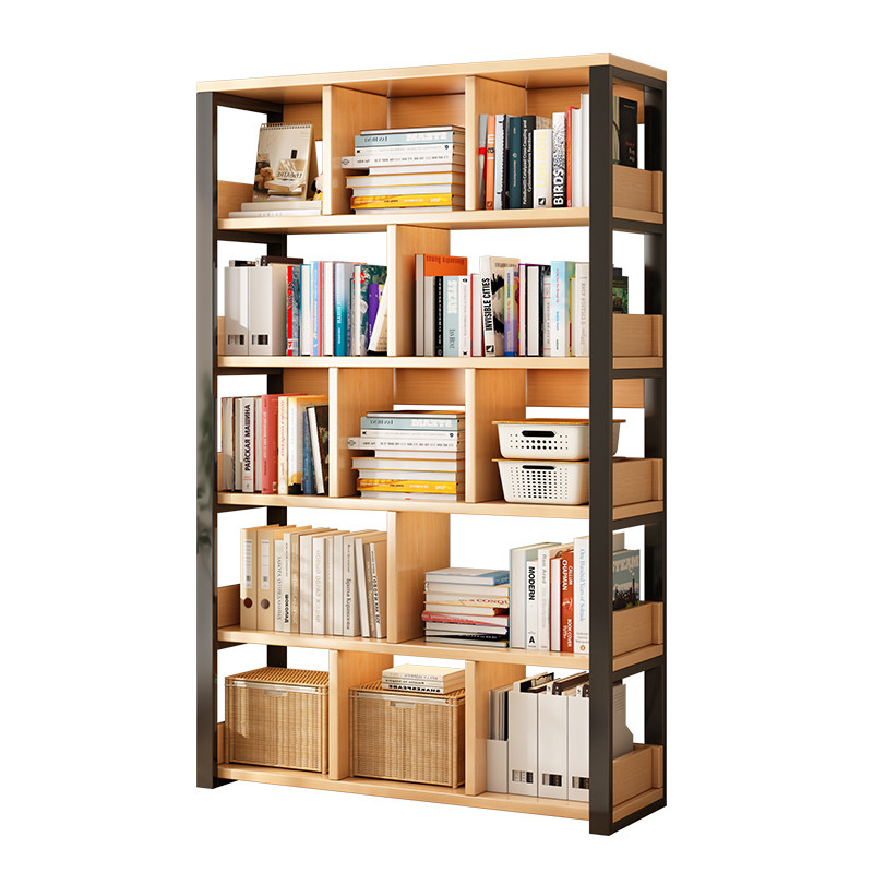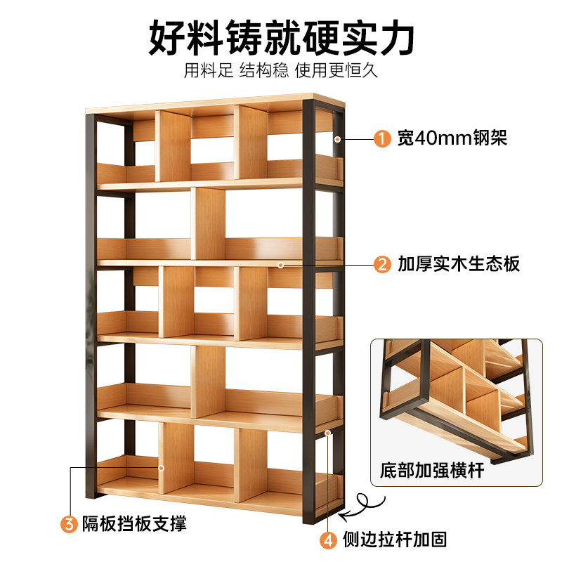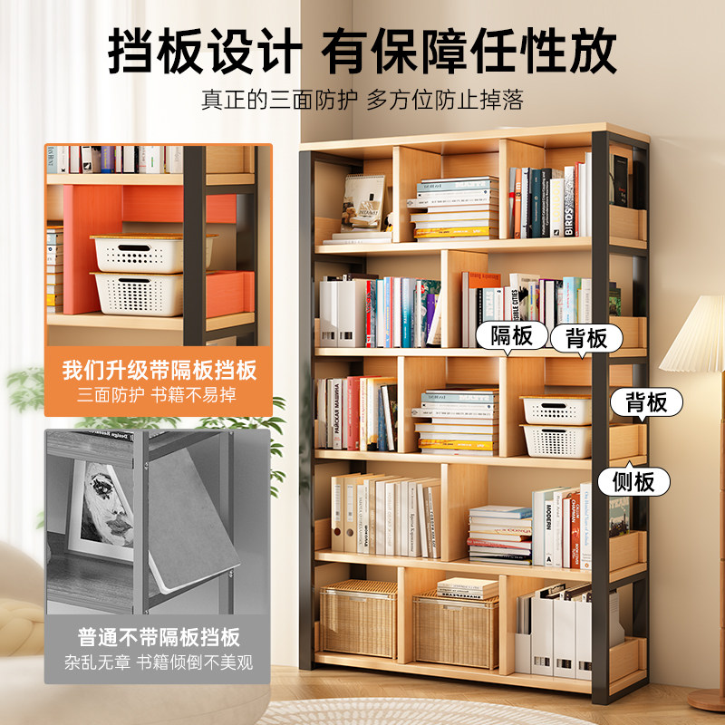 书架简约落地钢木多层客厅简易储物架家用卧室收纳铁艺书柜置物架