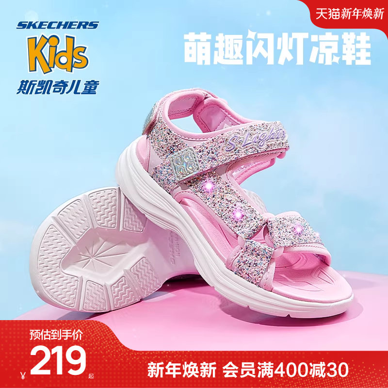Skechers斯凯奇女童凉鞋夏款闪灯鞋儿童鞋亮灯中大童女孩公主鞋子