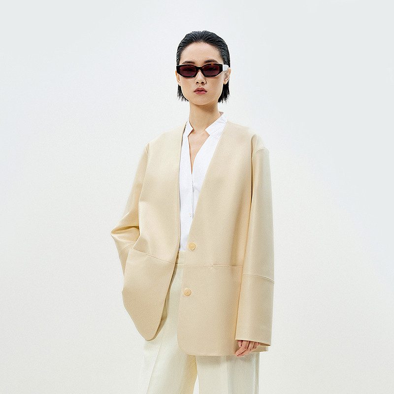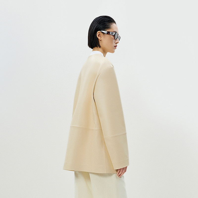 【精工系列】LESS春隐藏口袋羊皮革皮衣高级气质外套女2P2A13070