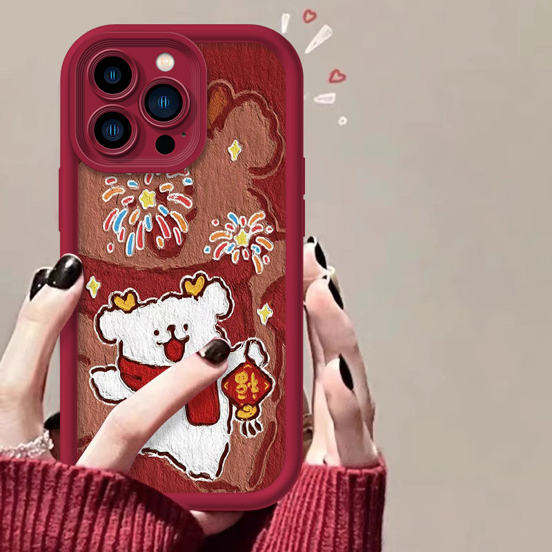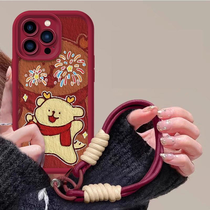 新年手机壳苹果17可爱iPhone16promax华为pura80小米15一对14plus情侣12款13线条小狗mate70喜庆红色马年新款