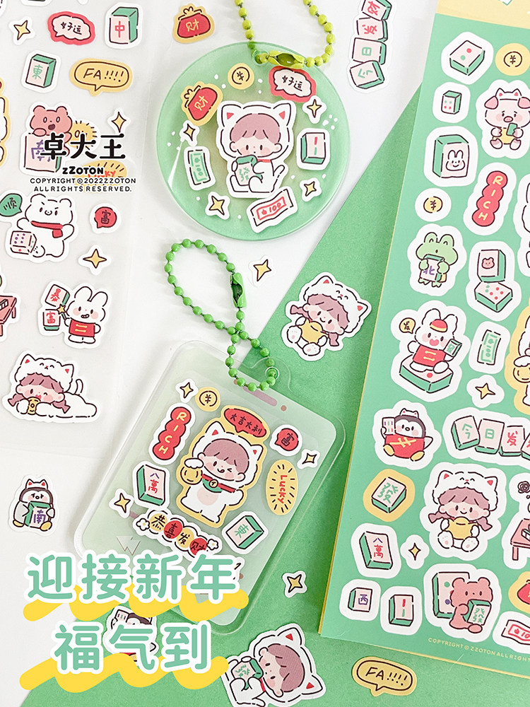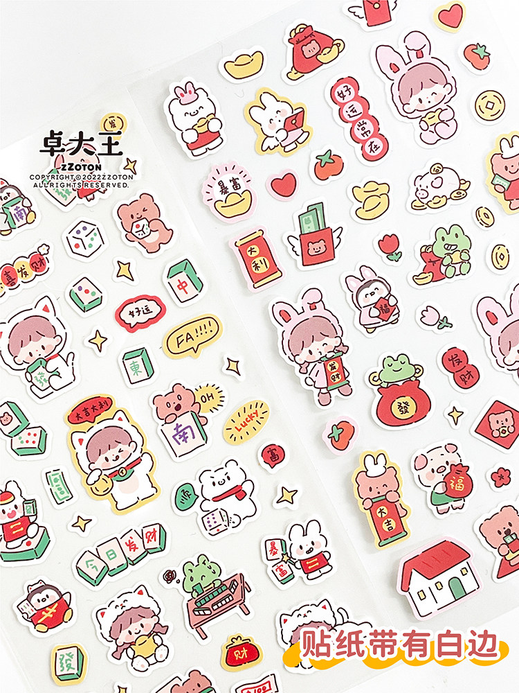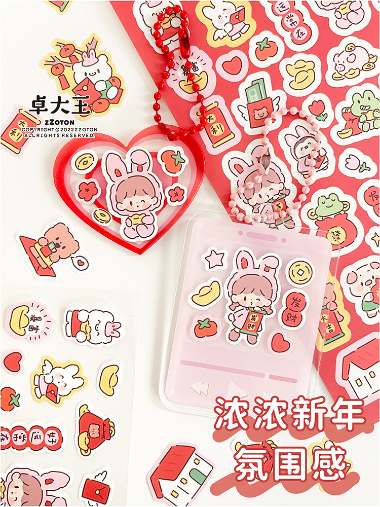 卓大王小小阿卓新春咕卡贴手帐兔年麻贴纸追星可爱防水韩系随心配