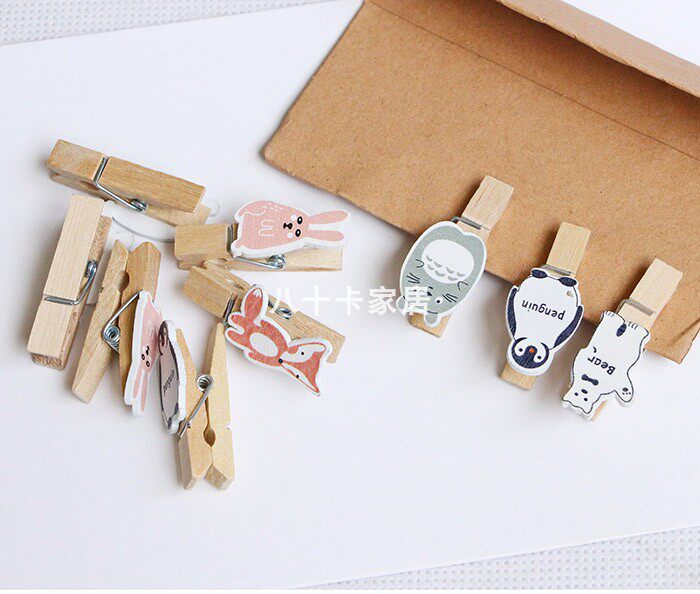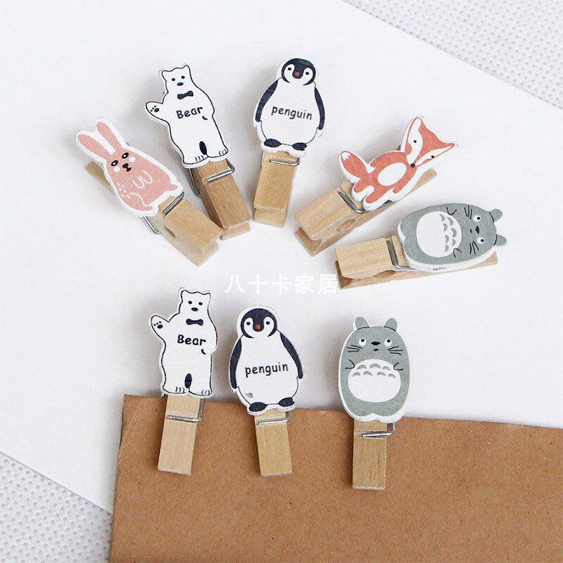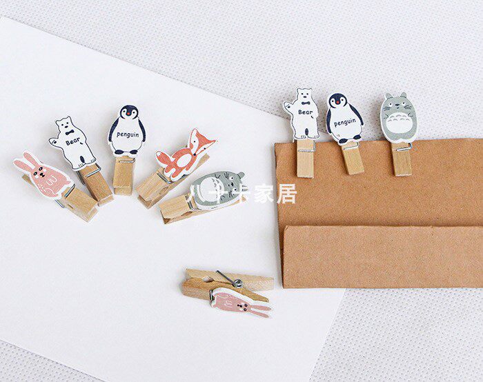 企鹅木夹北极熊兔子狐狸龙猫可爱卡通照片夹子网红迷你便签纸条夹