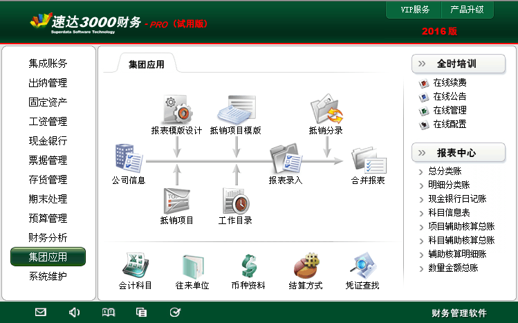 速达财务pro软件出纳资产工资票据存货期末预算集团应用系统维护