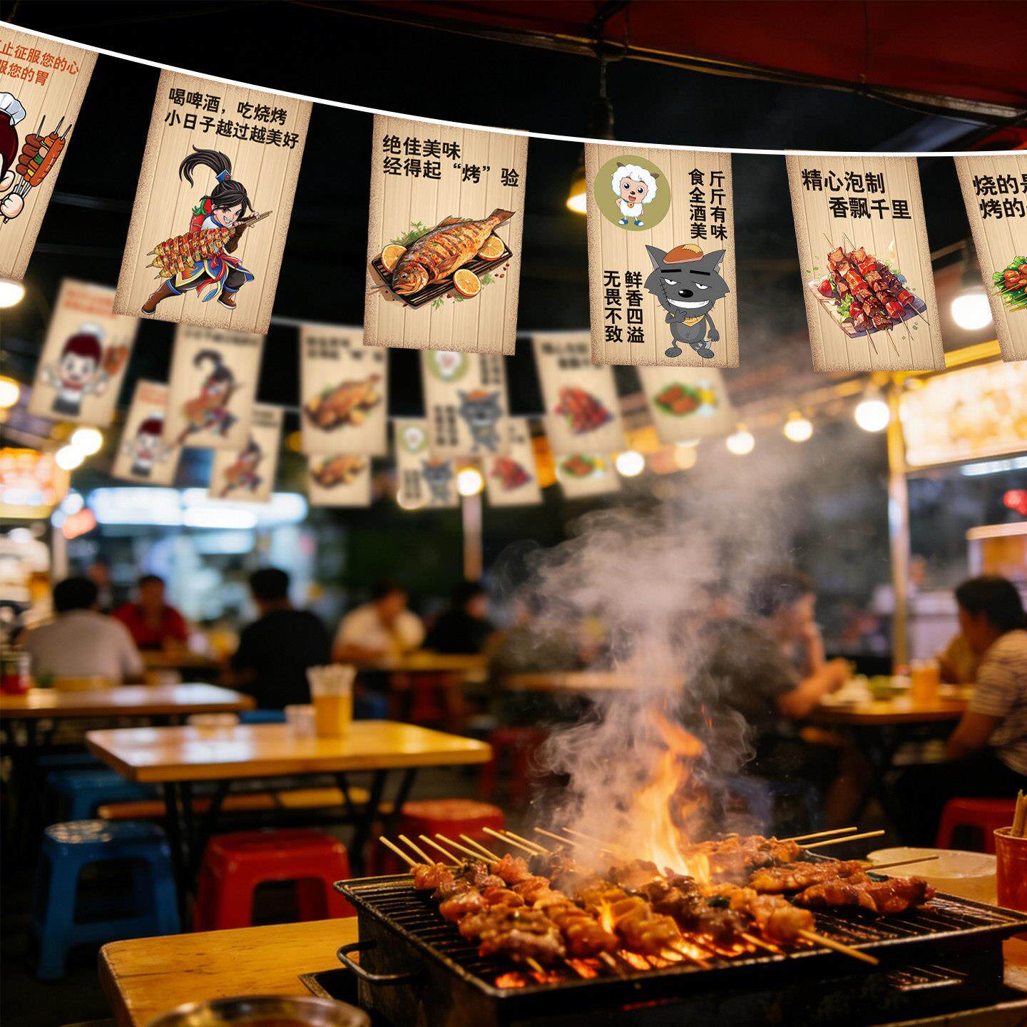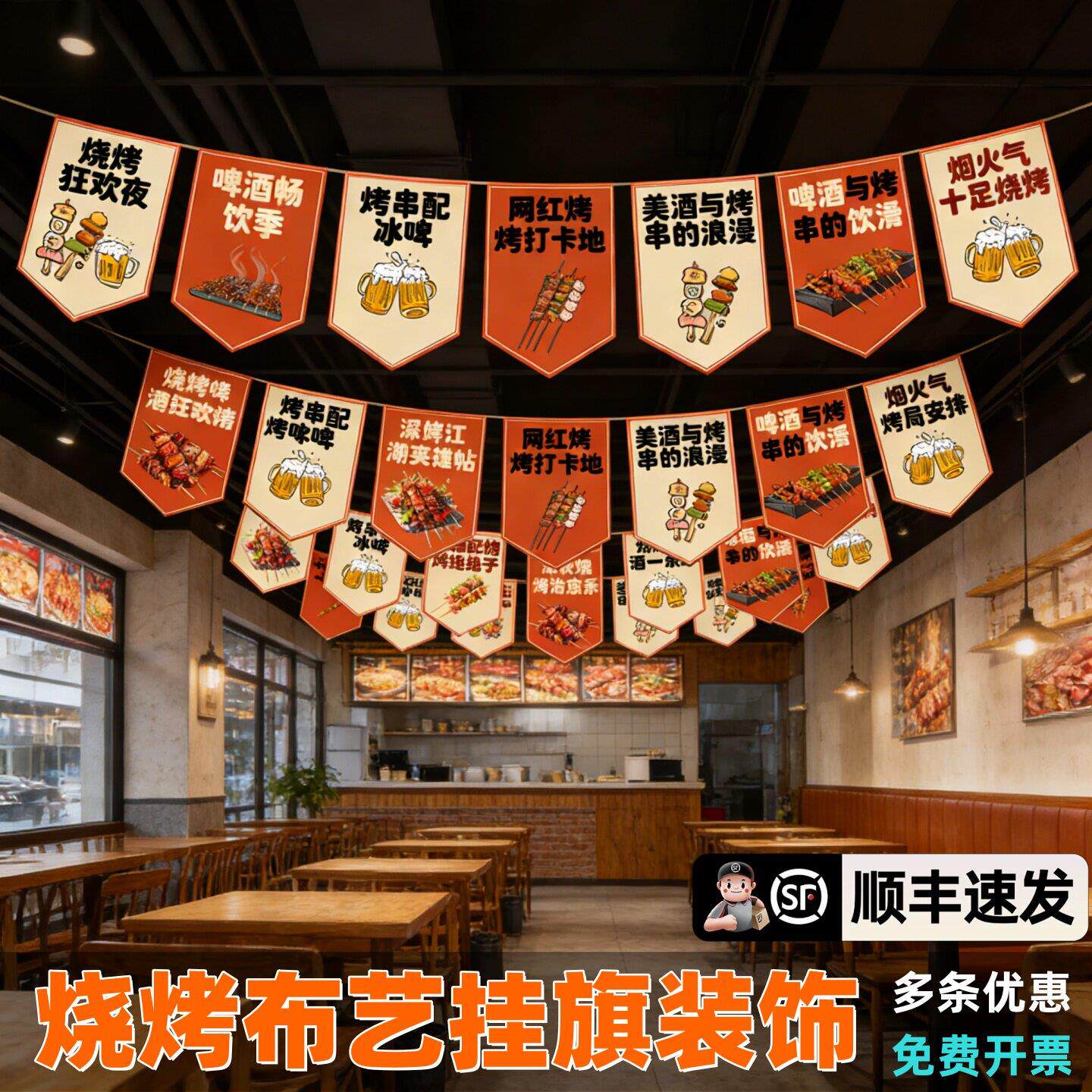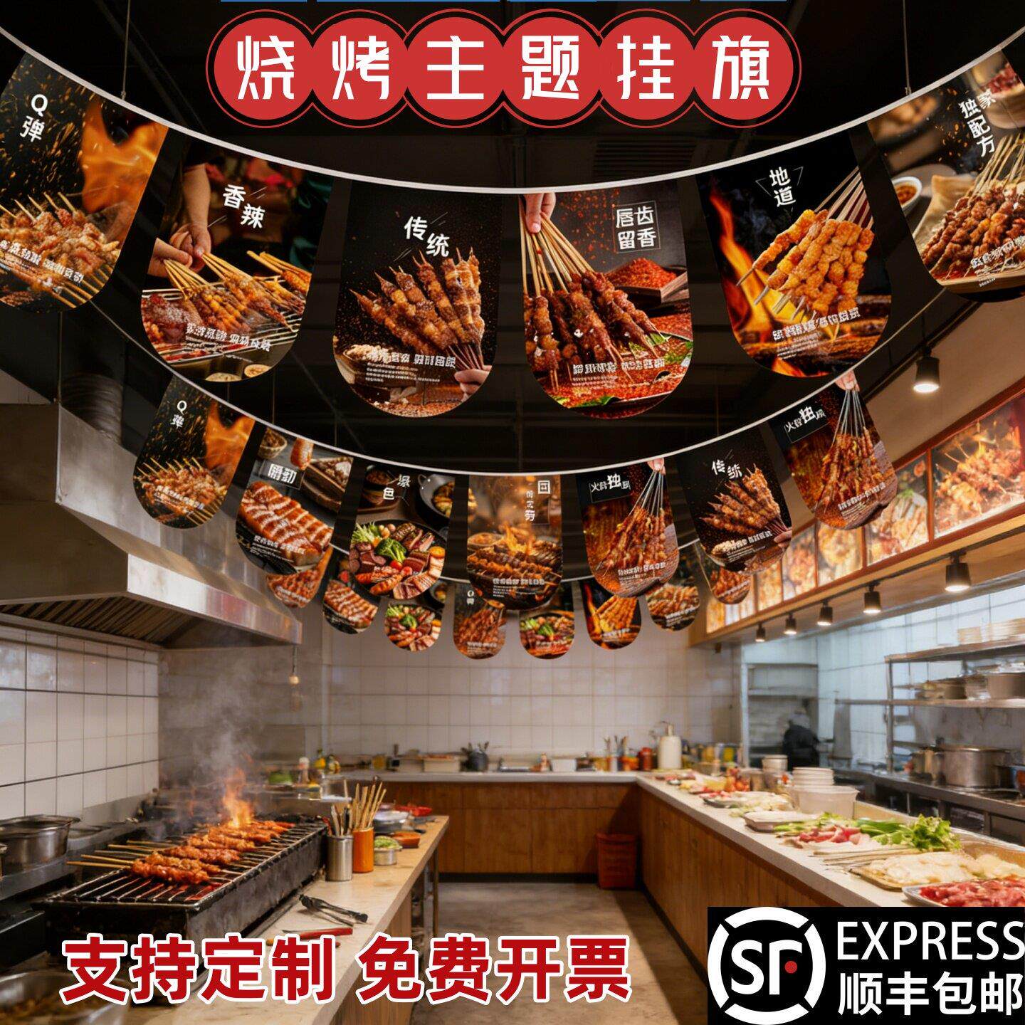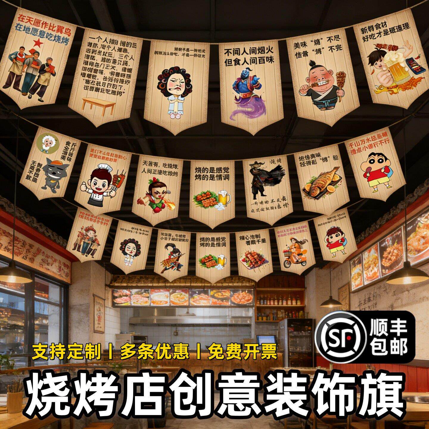 挂旗定制烧店氛围布置天幕烤吊顶拉旗夜宵小吃宣传旗帜大排档装饰
