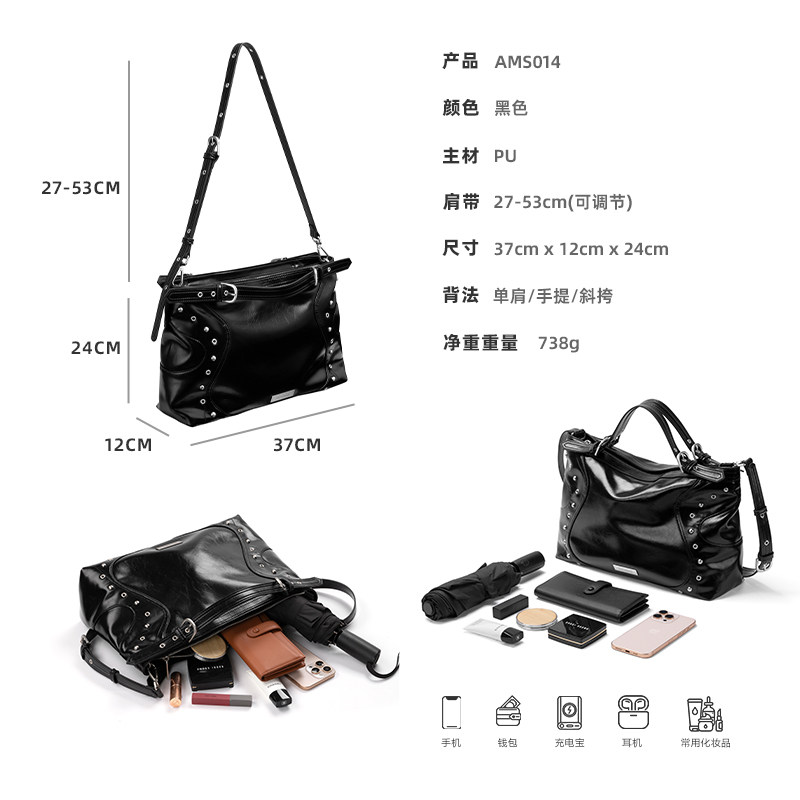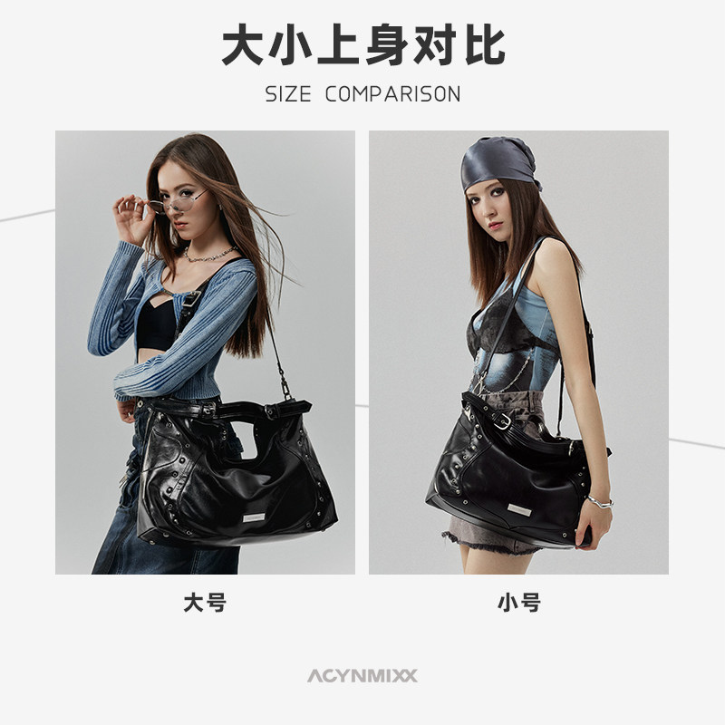 Acynmixx轻奢小众铆钉机车包女大容量托特包单肩斜挎包复古手提包
