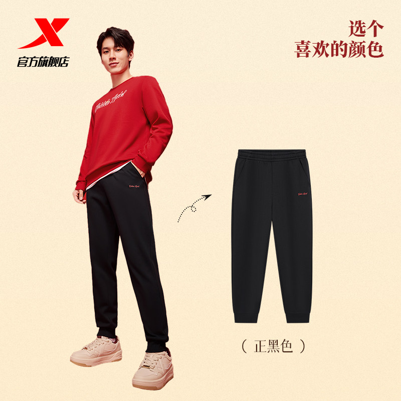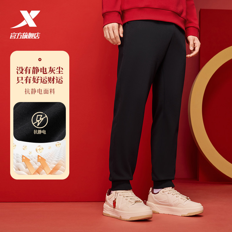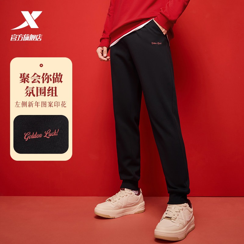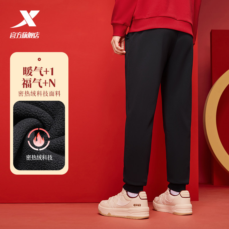特步新春系列 |加绒卫裤马年长裤冬季男运动裤宽松裤子保暖休闲裤
