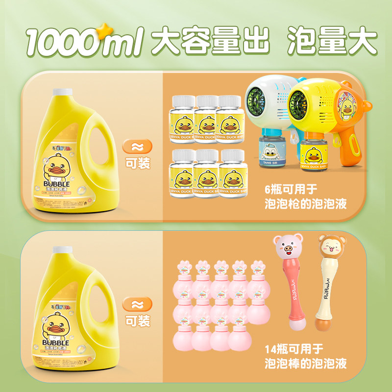 小黄鸭泡泡水补充液儿童玩具吹泡泡机专用枪棒泡泡液大瓶装浓缩液