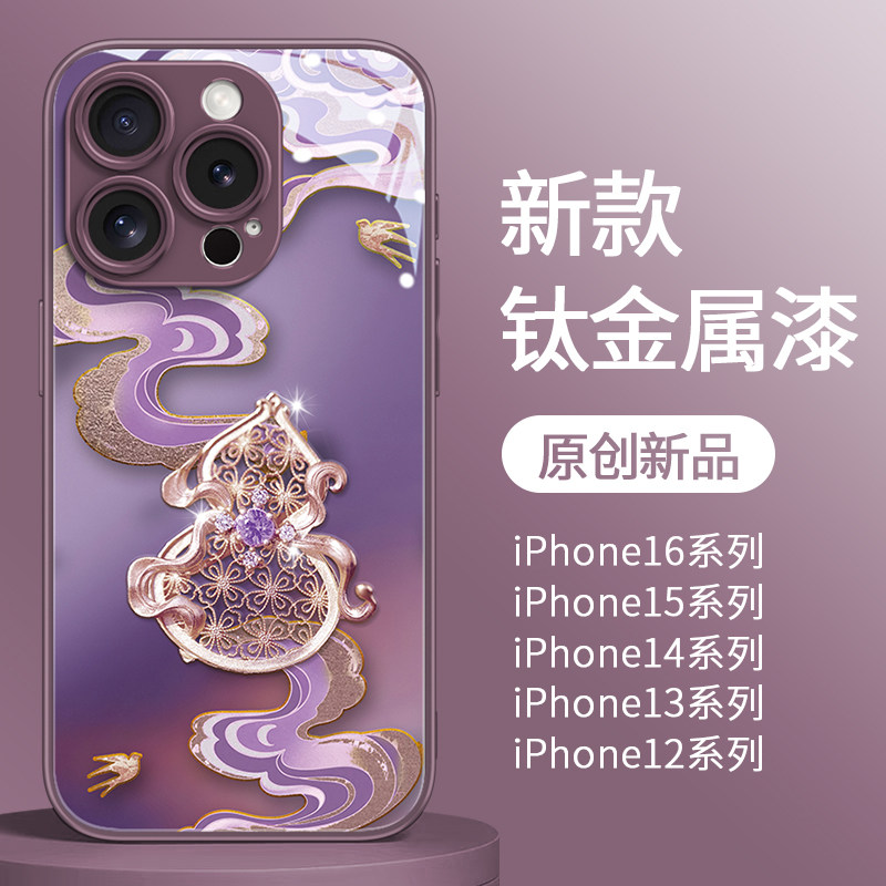适用苹果16promax手机壳新款祥云掐丝葫芦iphone16pro女款保护套15plus国潮风全包防摔14创意高级感外壳女