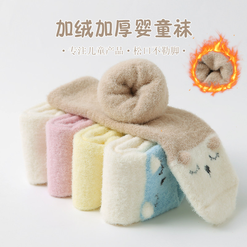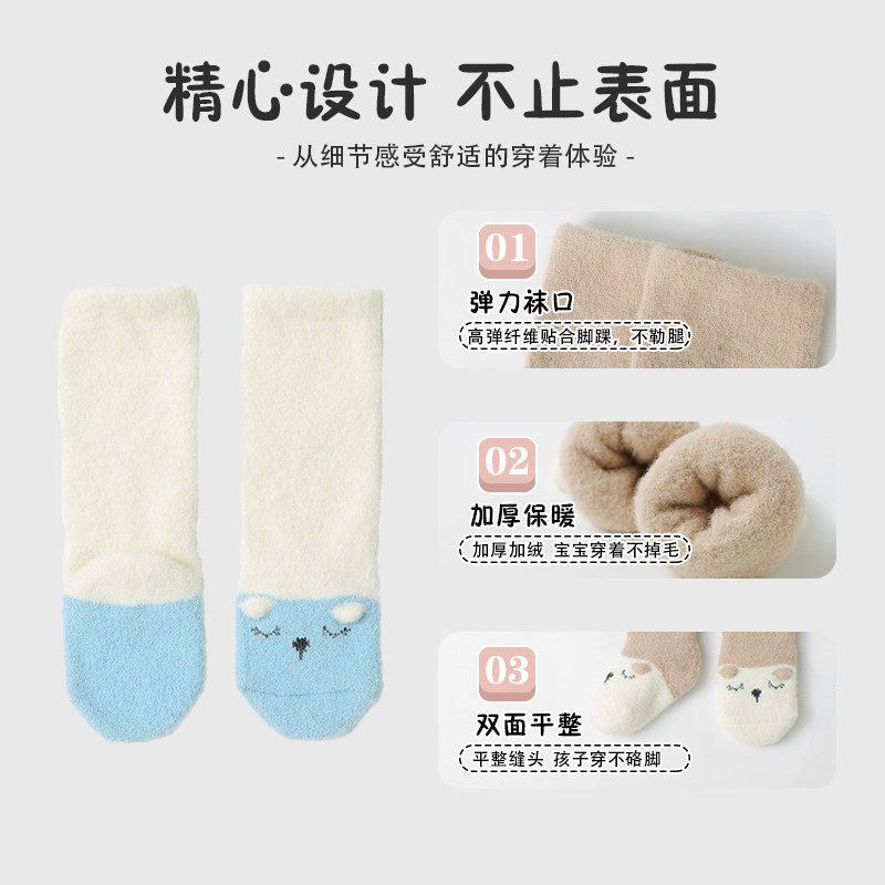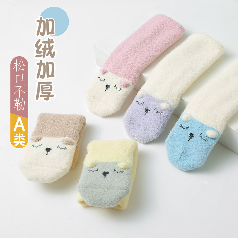 婧麒婴儿袜子秋冬季男童女童加厚保暖过膝长筒袜宝宝貂绒毛绒袜子