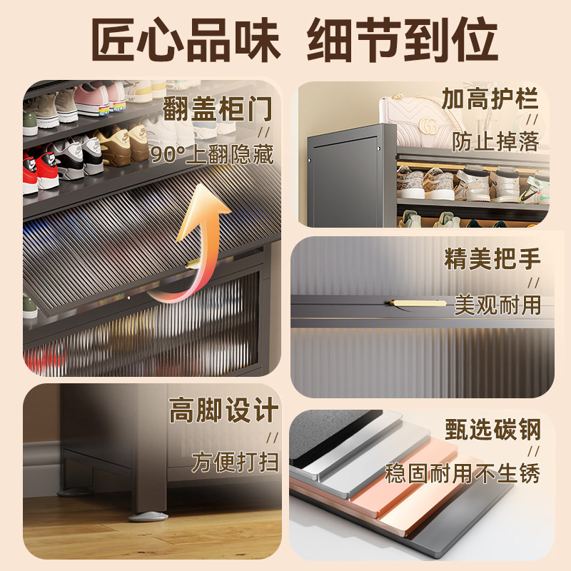 超薄鞋柜2025新款12cm家用门口大容量北欧简约金属极窄入户翻斗柜