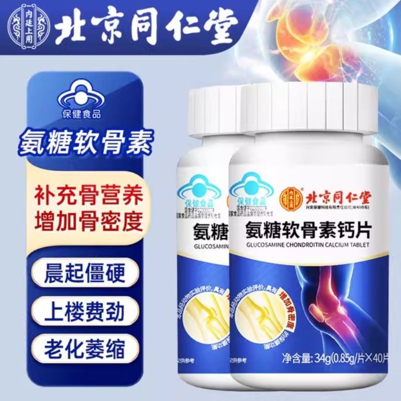 北京同仁堂氨糖软骨素钙片中老年护关节疼痛补钙腿抽筋官方旗舰店