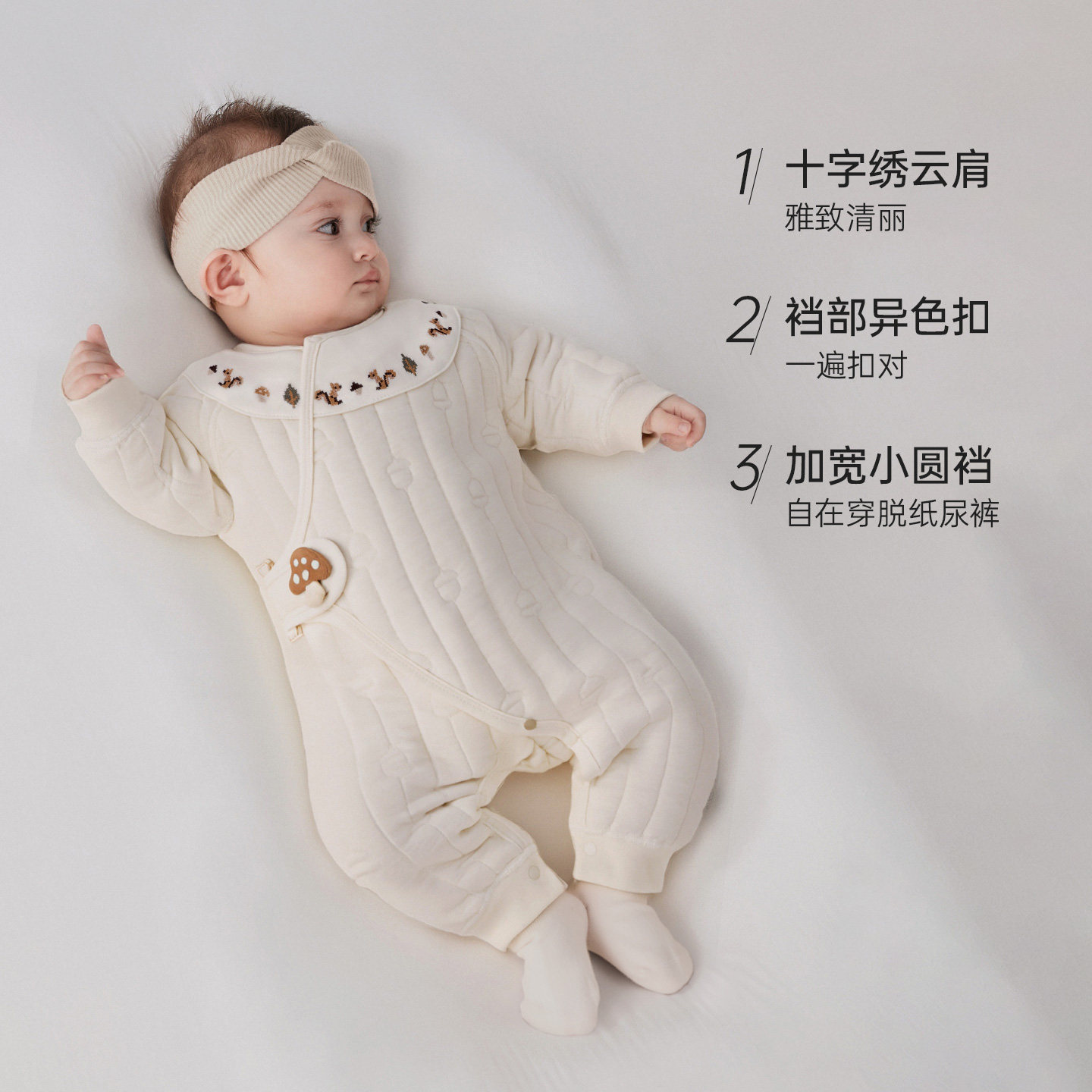 babycare冬季保暖山茶花连体衣宝宝包屁衣新生儿爬服外出婴儿衣服