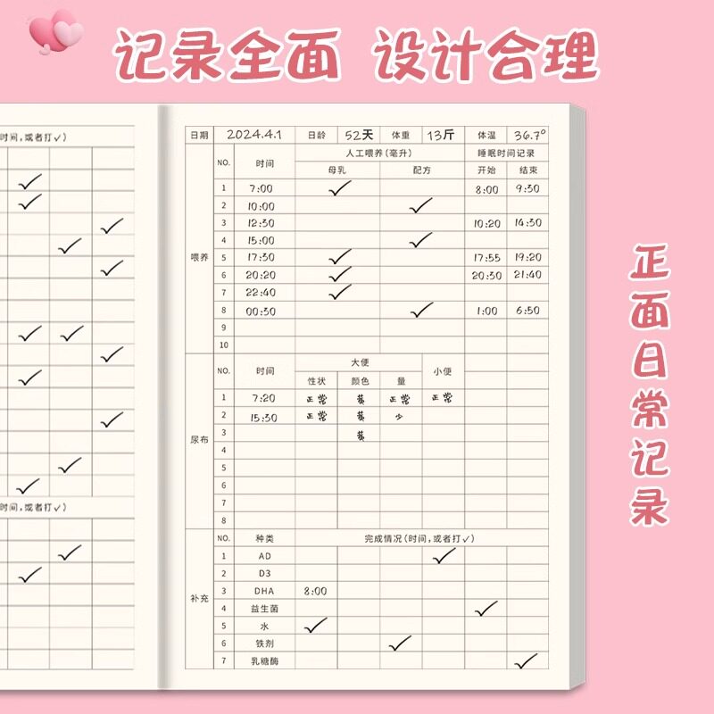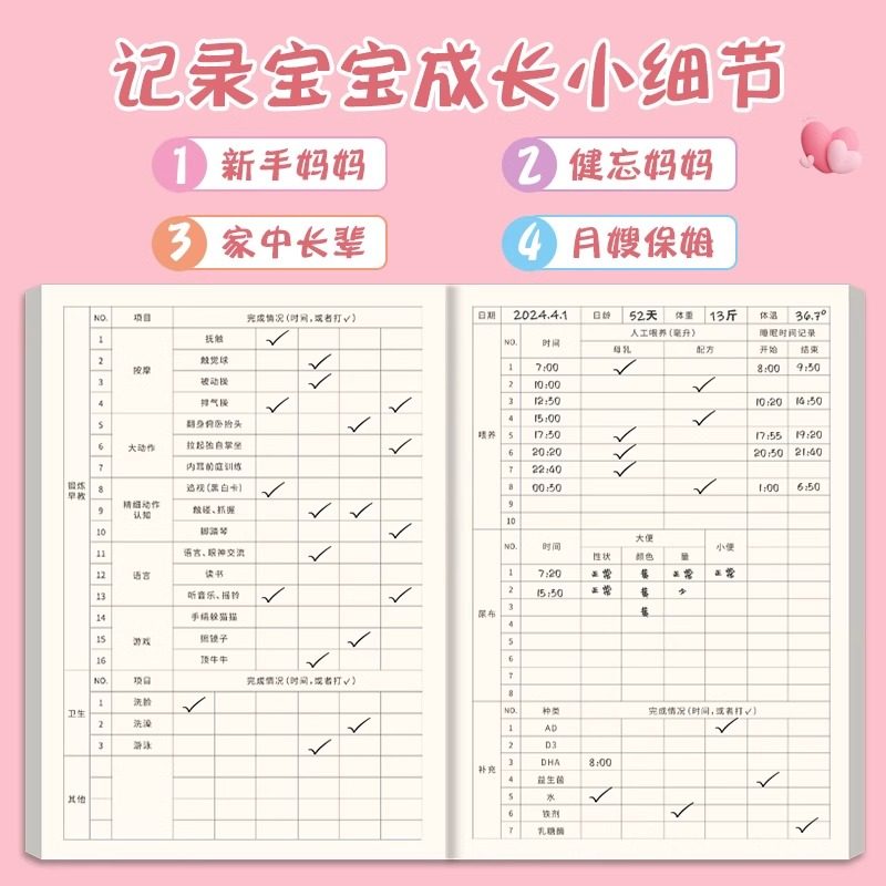 宝宝喂奶日记本蛇年新生儿每日作息母乳表格辅食成长月嫂手册喝吃奶量母婴护理生活日志婴儿宝宝喂养记录本