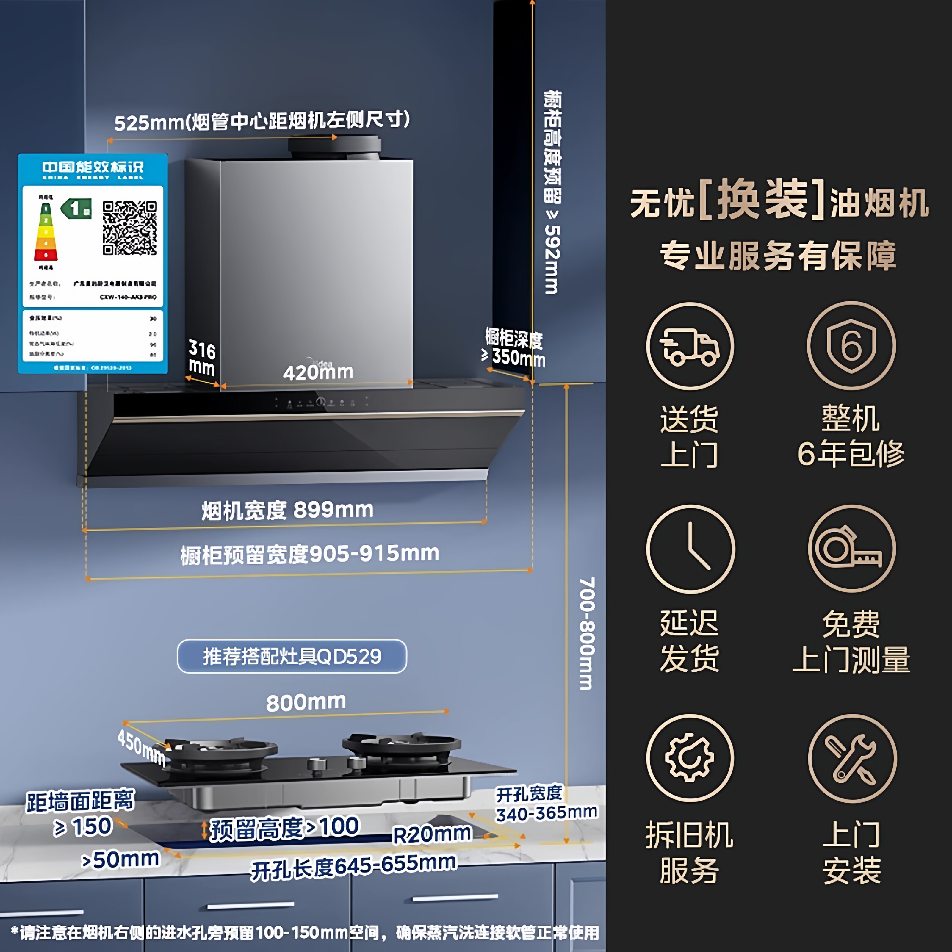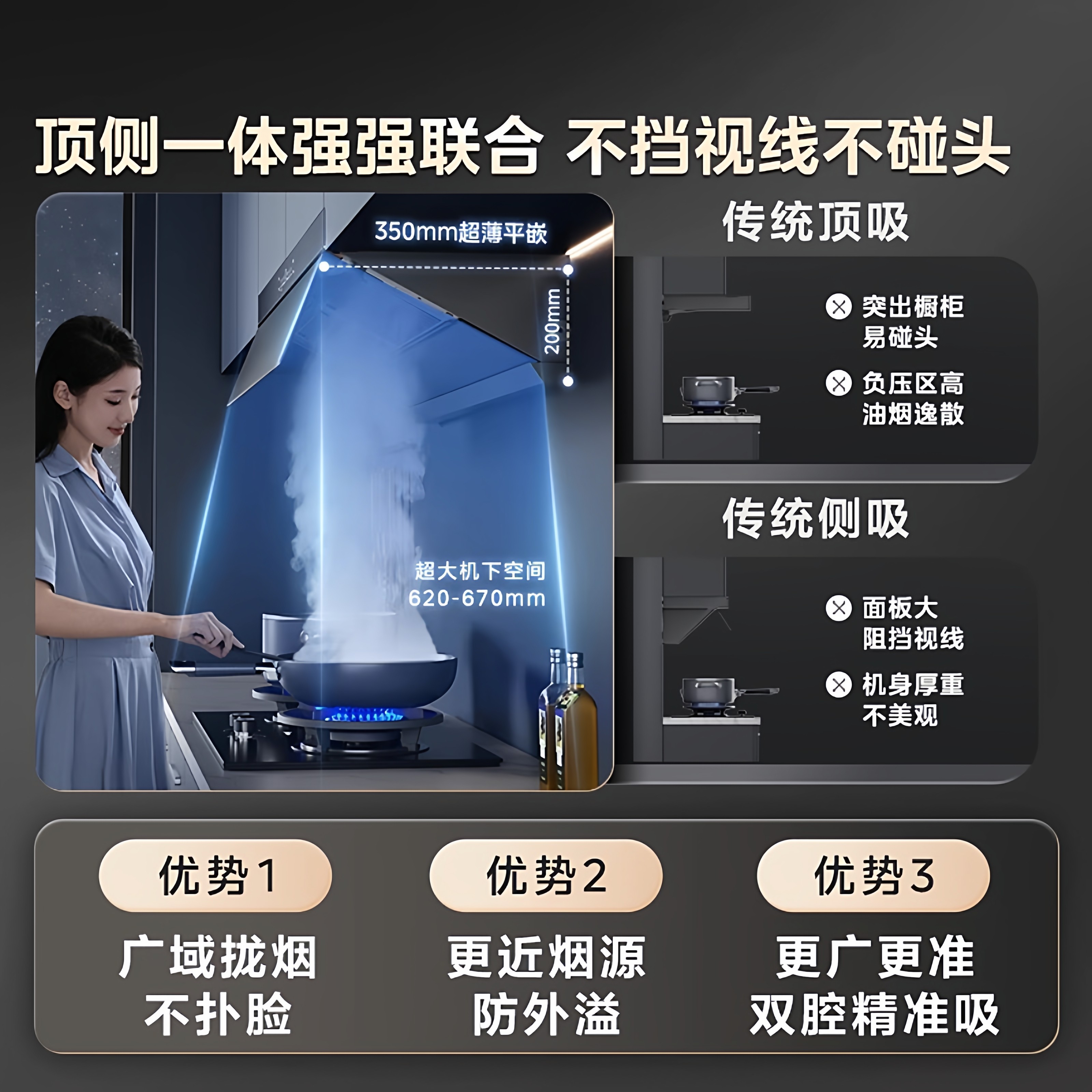 [AI变频]美的官方蒸汽免拆洗AK3Pro抽油烟机家用厨房顶侧超大吸力