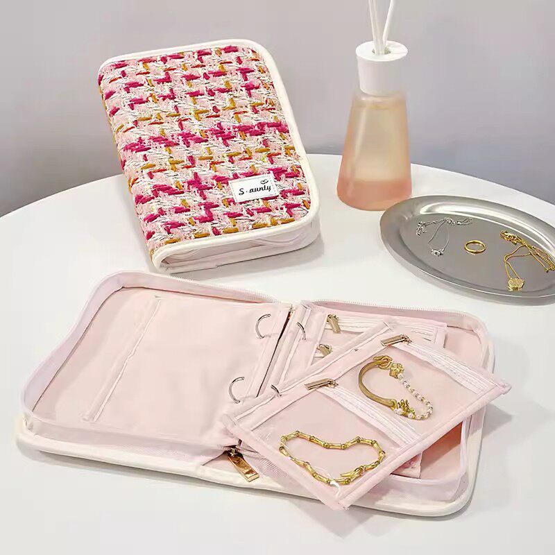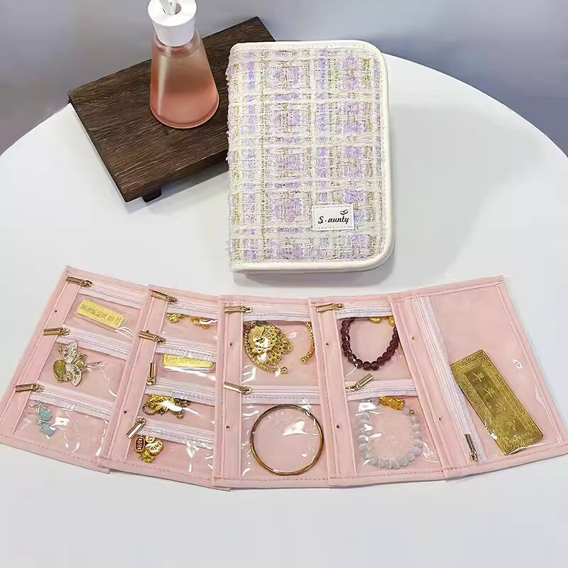 小香风拉链首饰收纳包饰品专用黄金手饰收纳册书2026新款旅行便携收纳本耳环项链手链手镯戒指包密封袋便携式