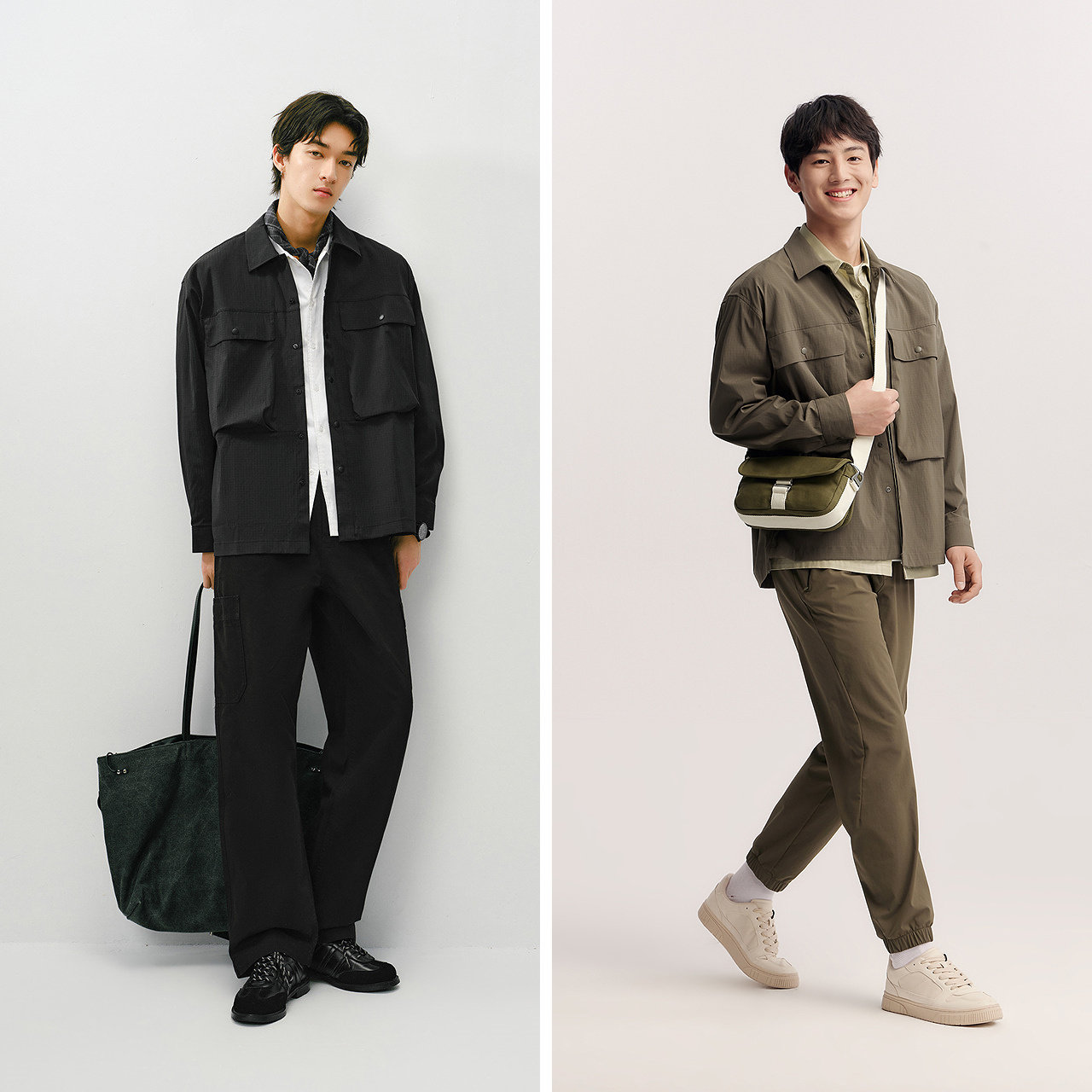 森马长袖衬衫男春季户外工装衬衣实用立体大口袋通勤上衣oversize