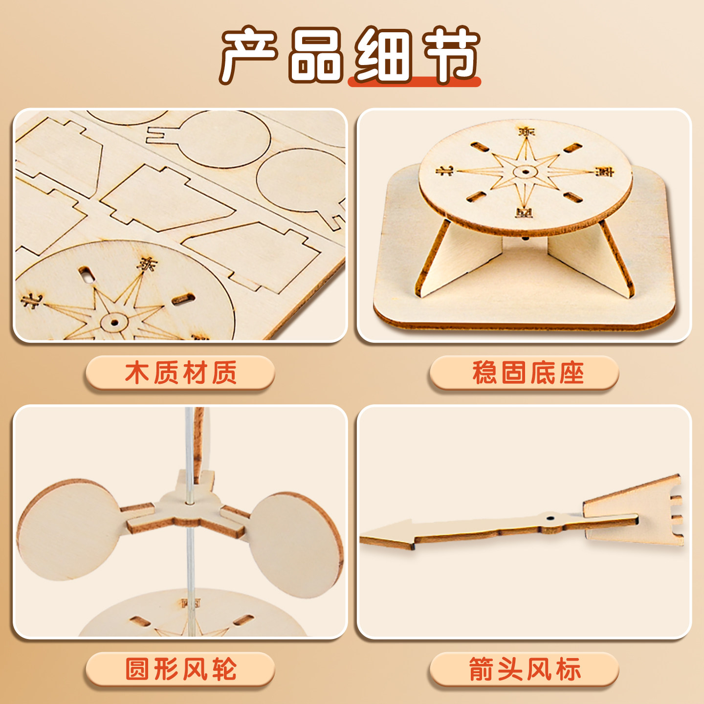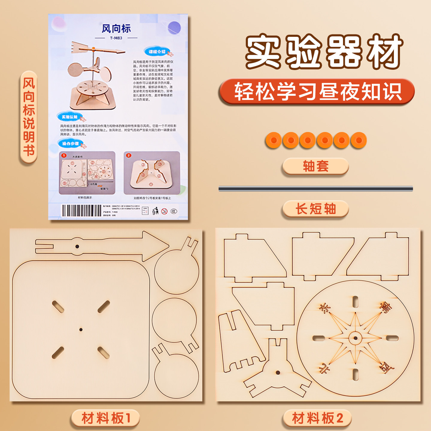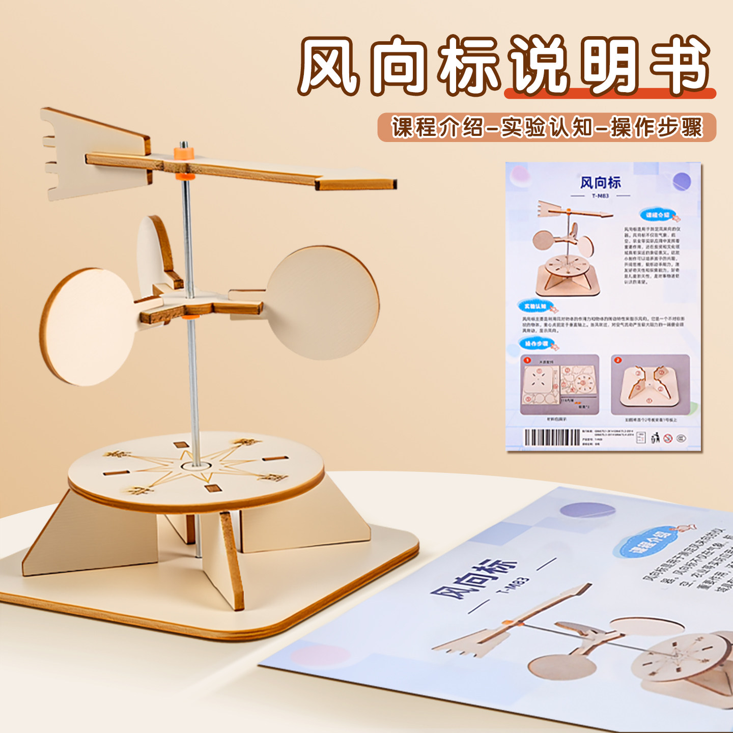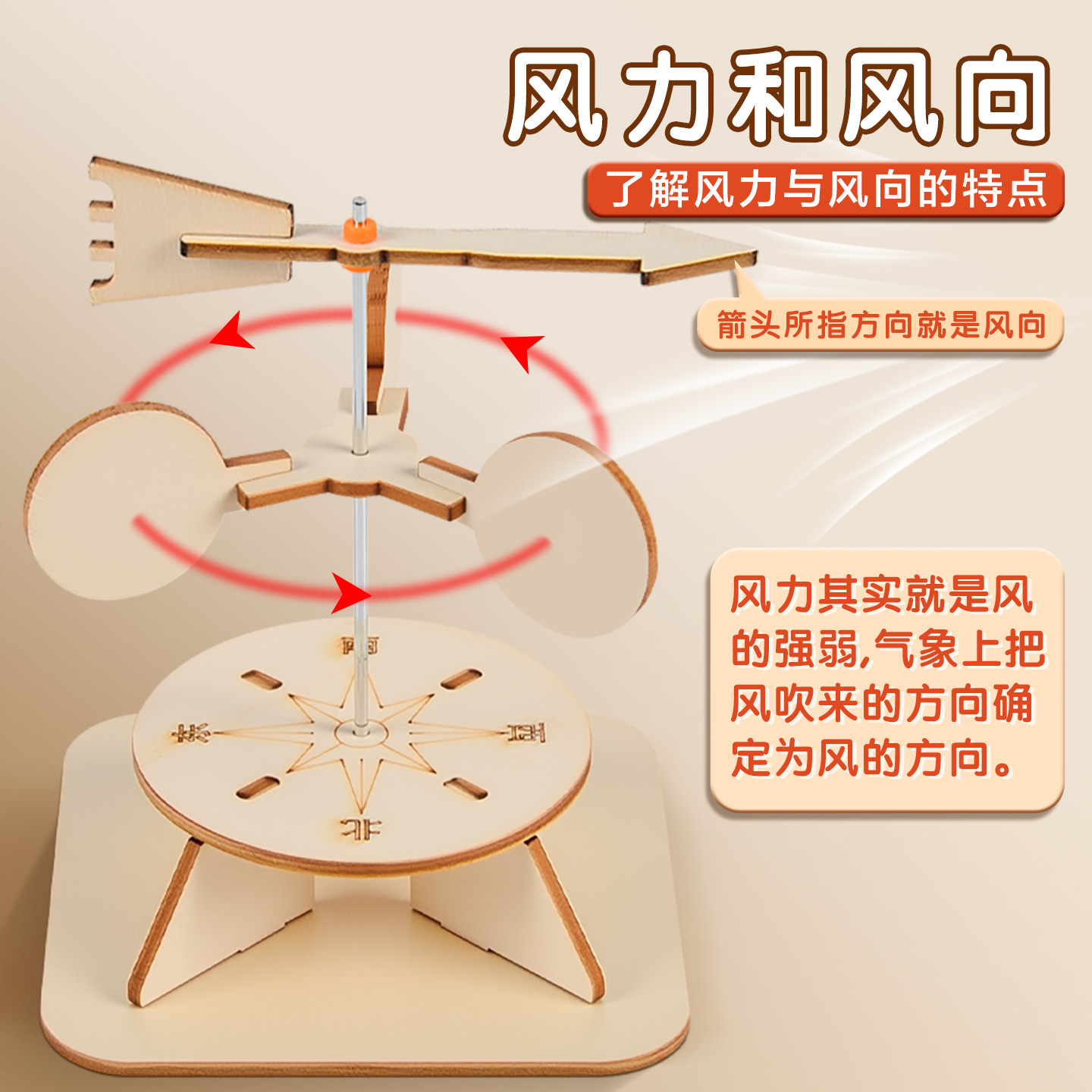 自制风向标计风速仪风力标测风仪科技小制作材料包DIY手工拼装制作儿童小学生科学小实验STEAM教育教具学具