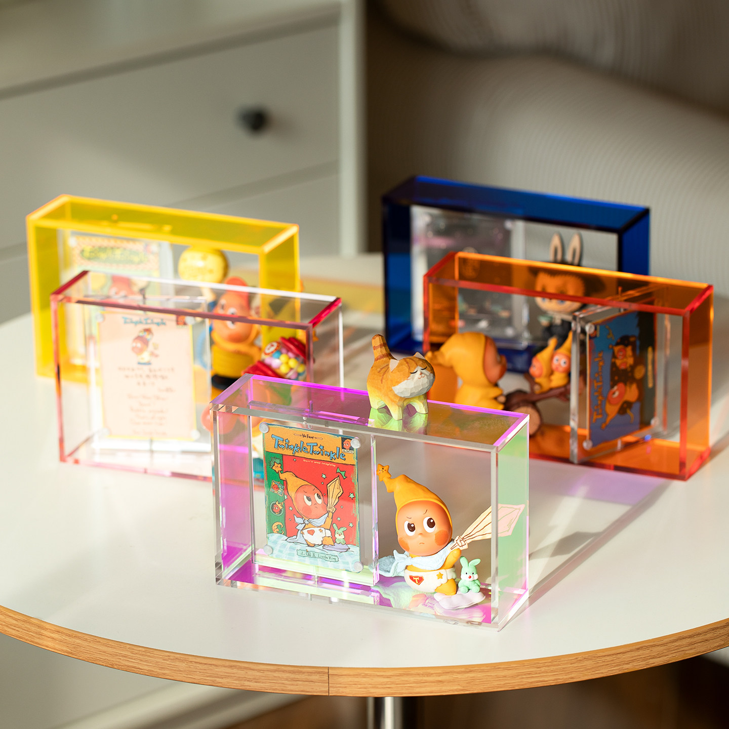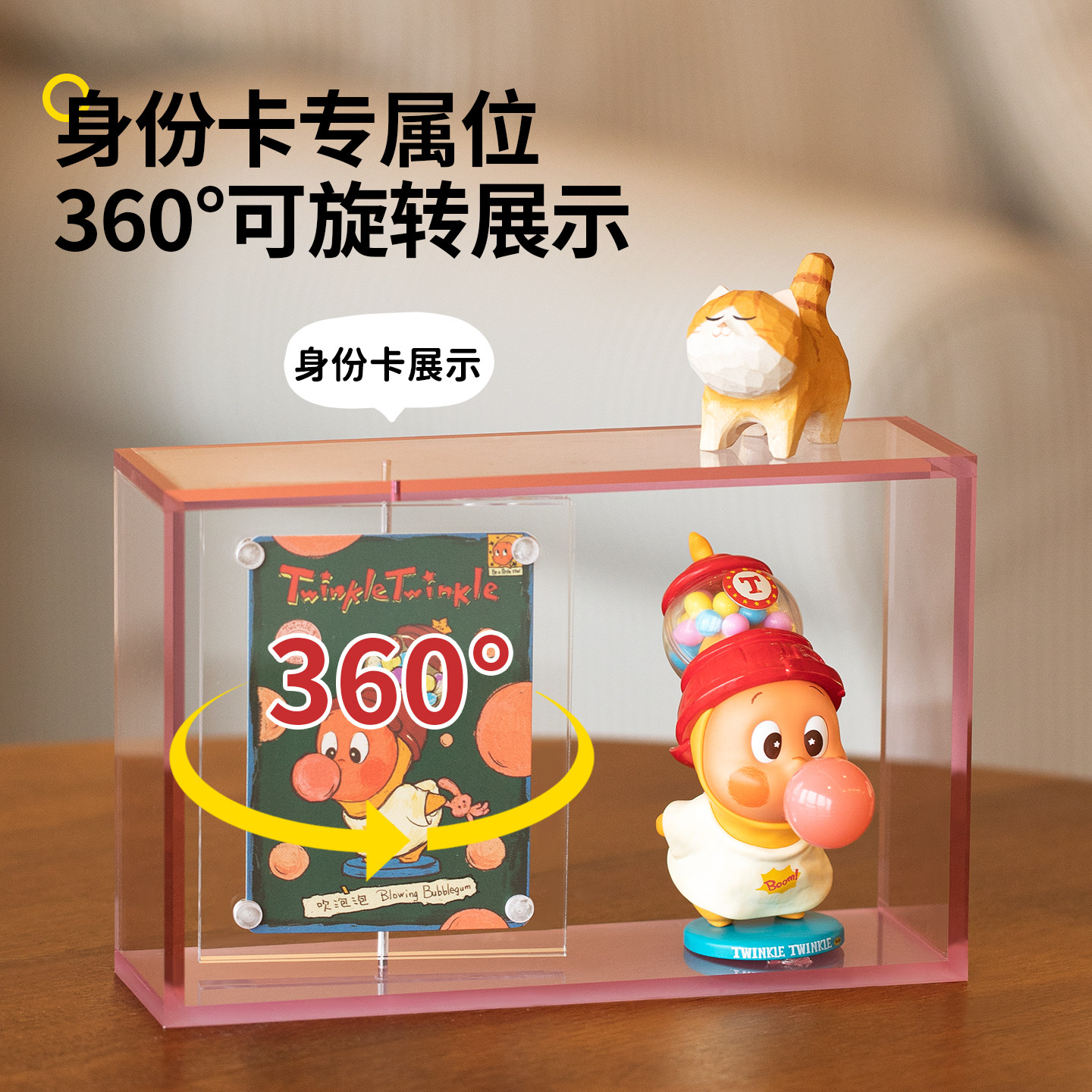 高级感磁吸亚克力盲盒收纳相框透明旋转身份小卡展示架子手办摆件