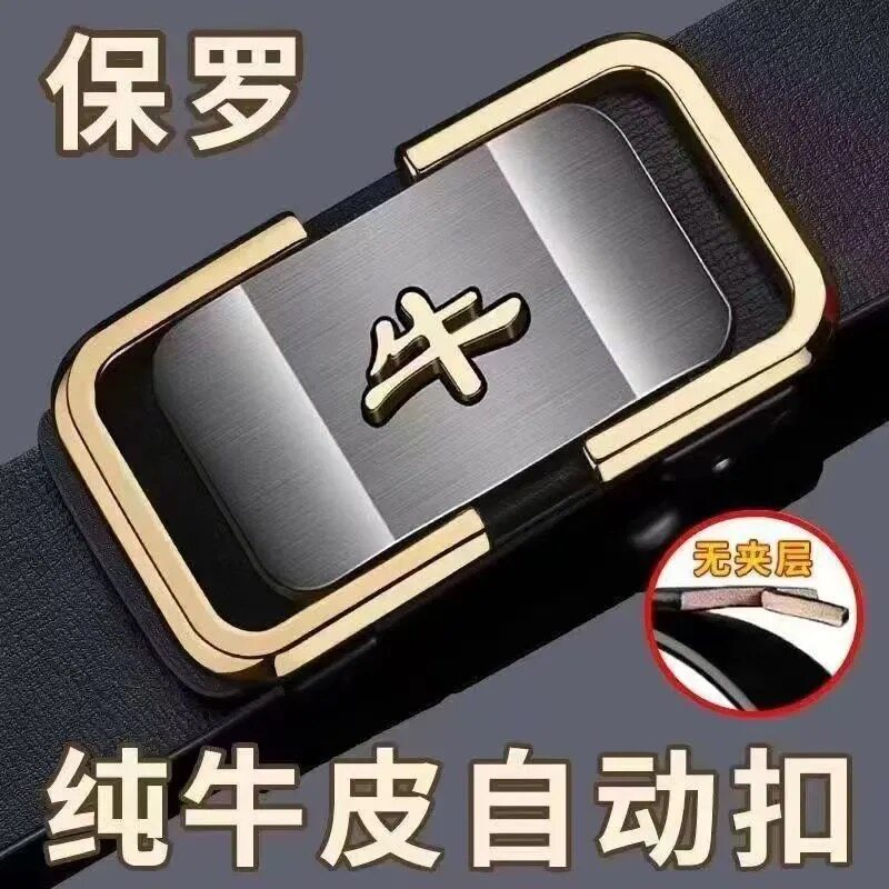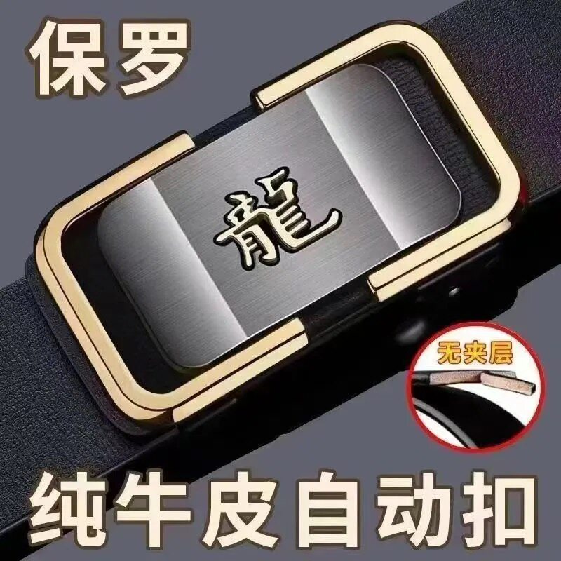 保罗正品男士皮带真皮自动扣腰带结实牛皮耐用百搭潮流休闲裤腰带