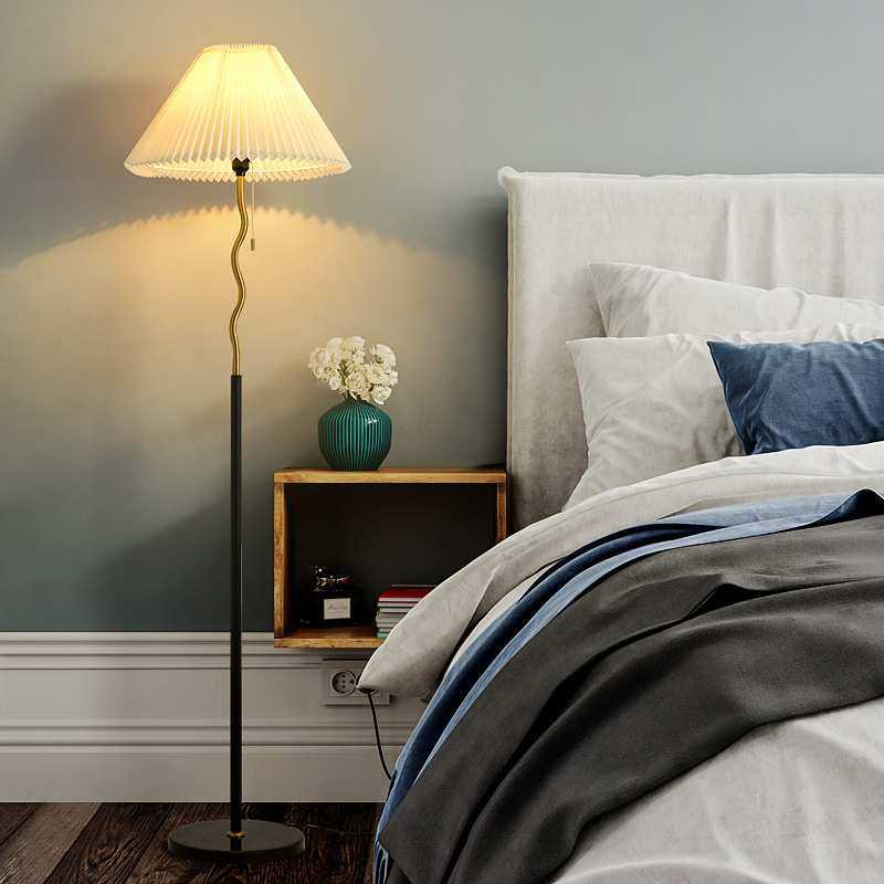 百褶布艺落地灯创意艺术个性日式简约客厅卧室床头氛围台灯可调光