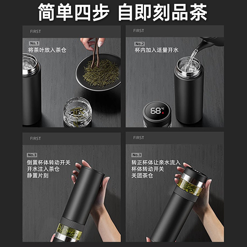 茶水分离保温杯泡茶杯大容量车载316L高档泡茶杯子温度显示显温