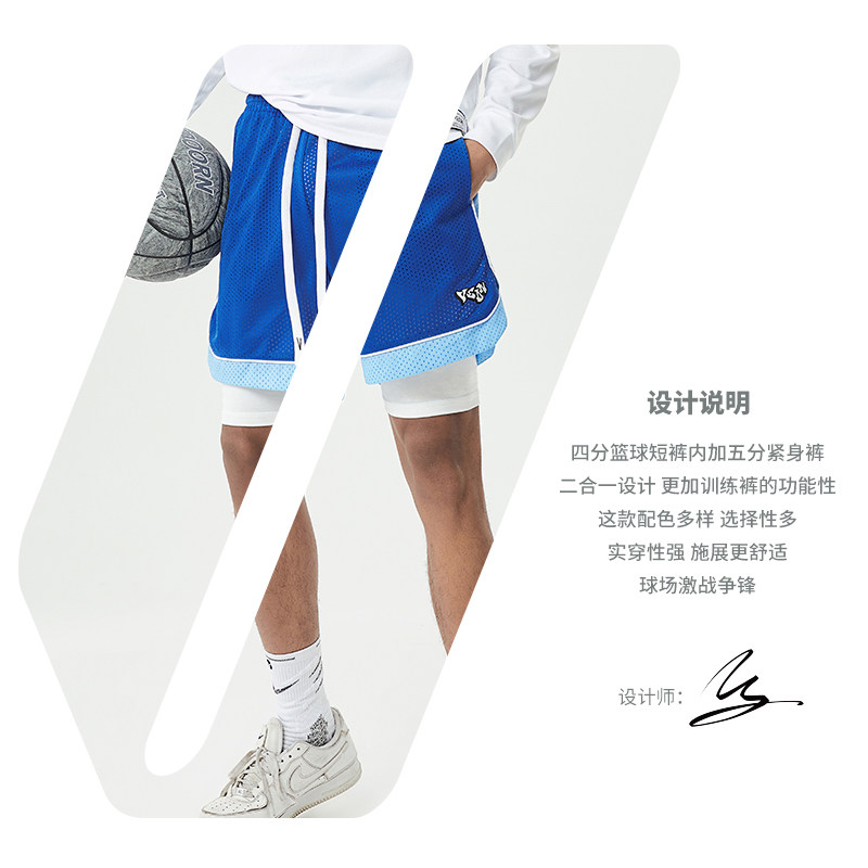 维动短裤争锋假两件篮球裤夏美式潮牌训练四分裤男跑步网眼运动裤