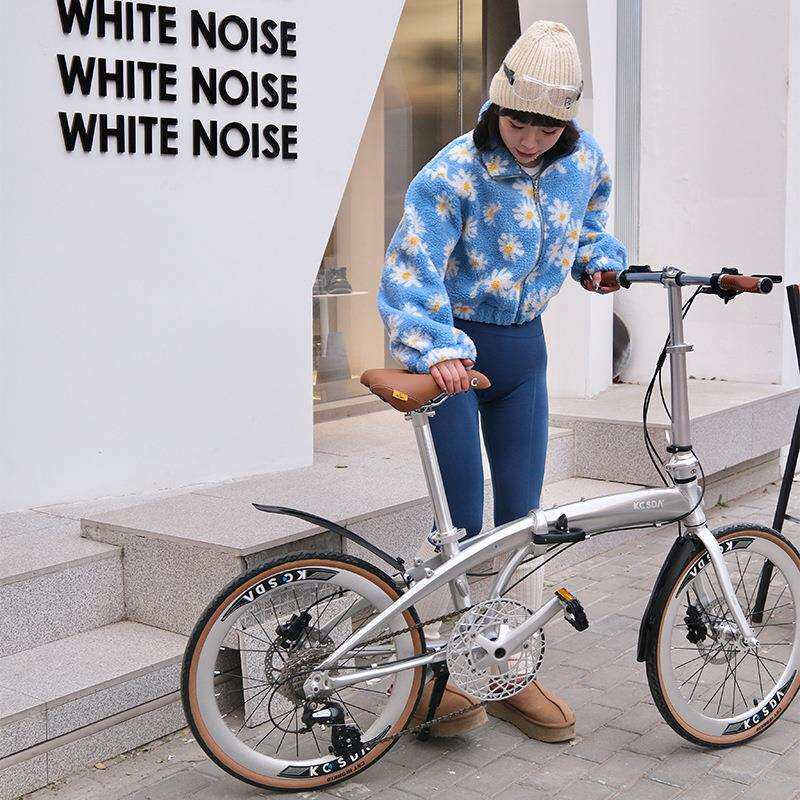 KOSDA 22寸铝合金超轻便携男变速碟刹拉丝银城市通勤折叠自行车女
