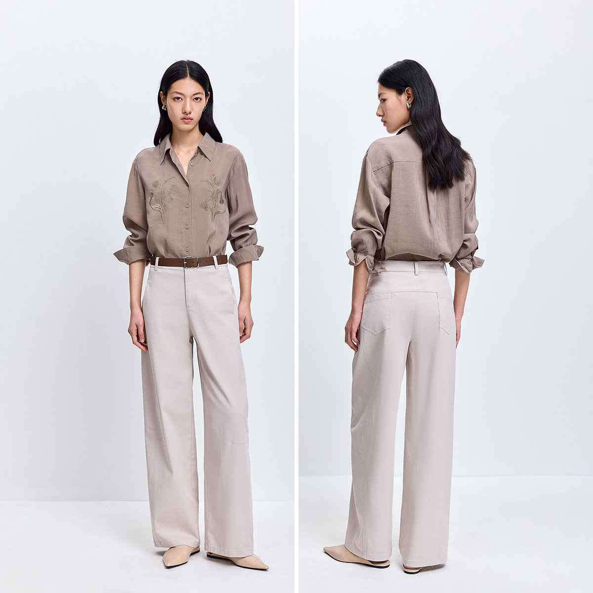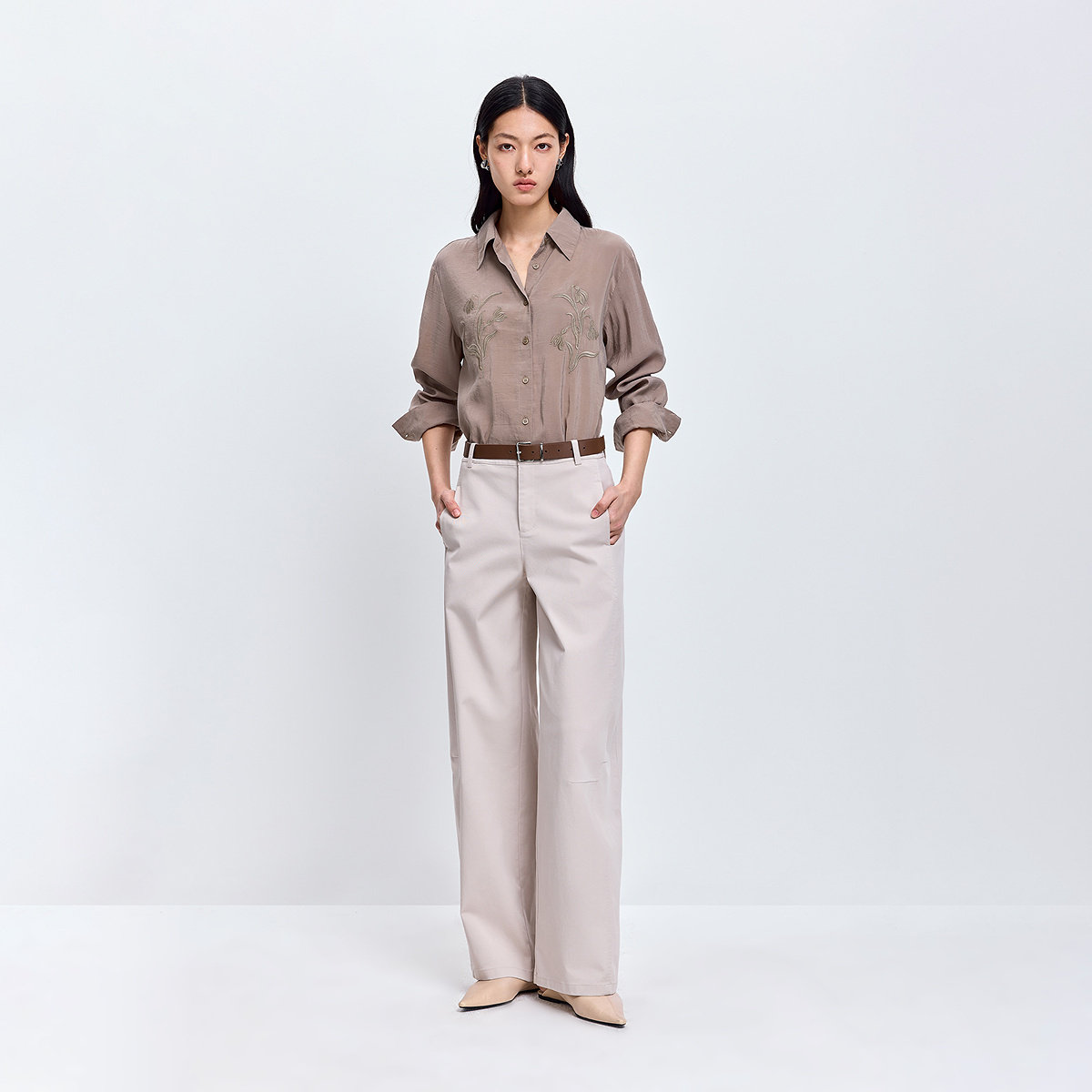 LILY2026春新款女装含莱赛尔时髦显瘦宽松通勤卡其色弯刀裤休闲裤