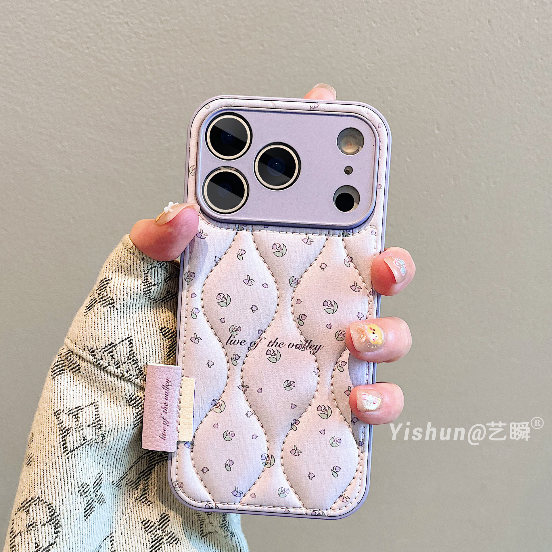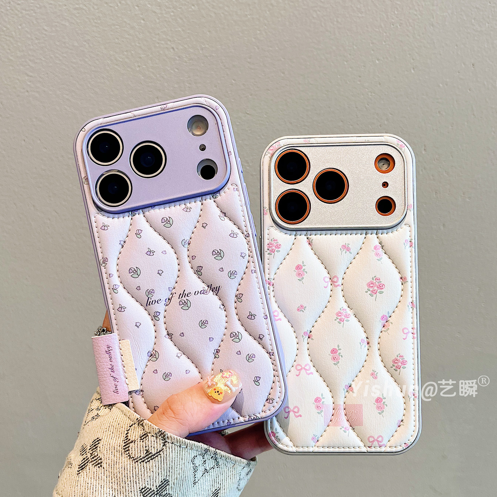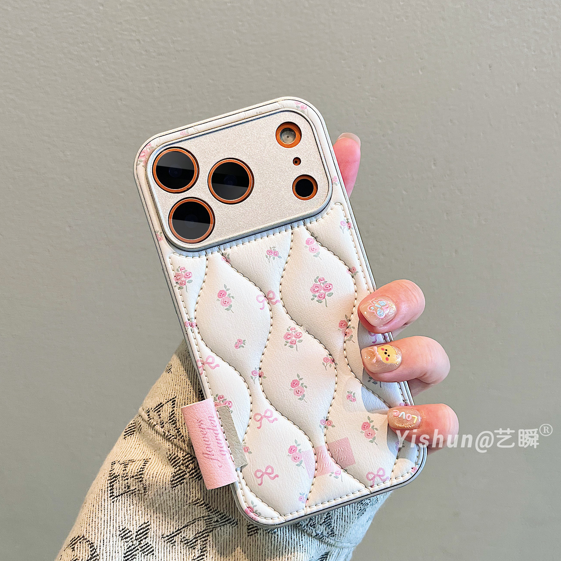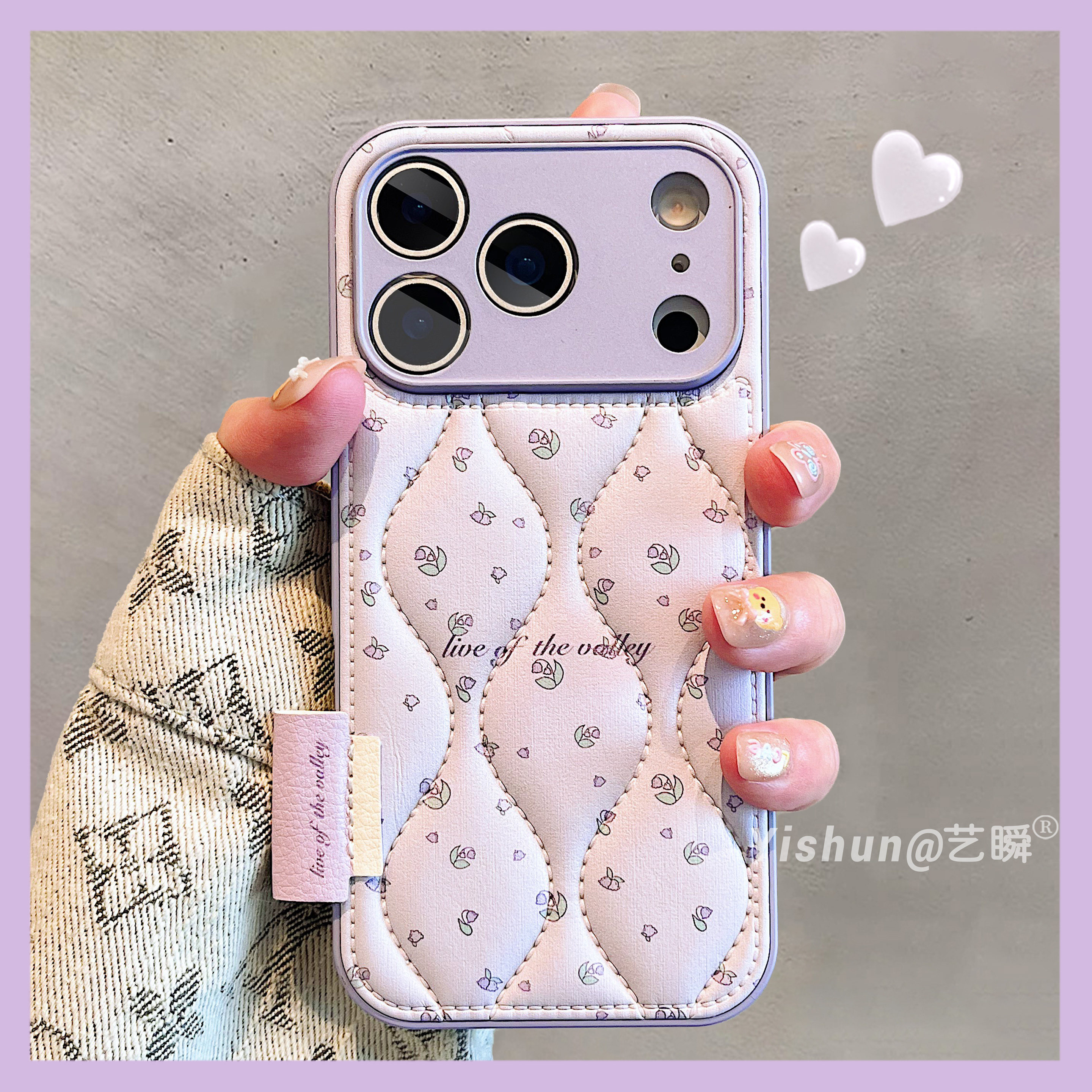 秋冬新款羽绒皮质小碎花适用iPhone17ProMax手机壳苹果16pro皮质鼓包13全包镜头ip15pro创意全包14pm女保护套