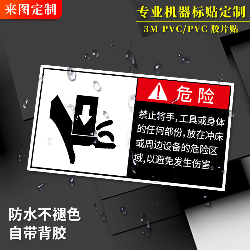 当心压手CNC设备安全警示标识牌车床加工中心机械伤害标签贴纸