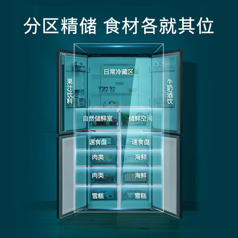 美的华凌神机547双系统超薄零嵌入式十字双开四门家用一级冰箱