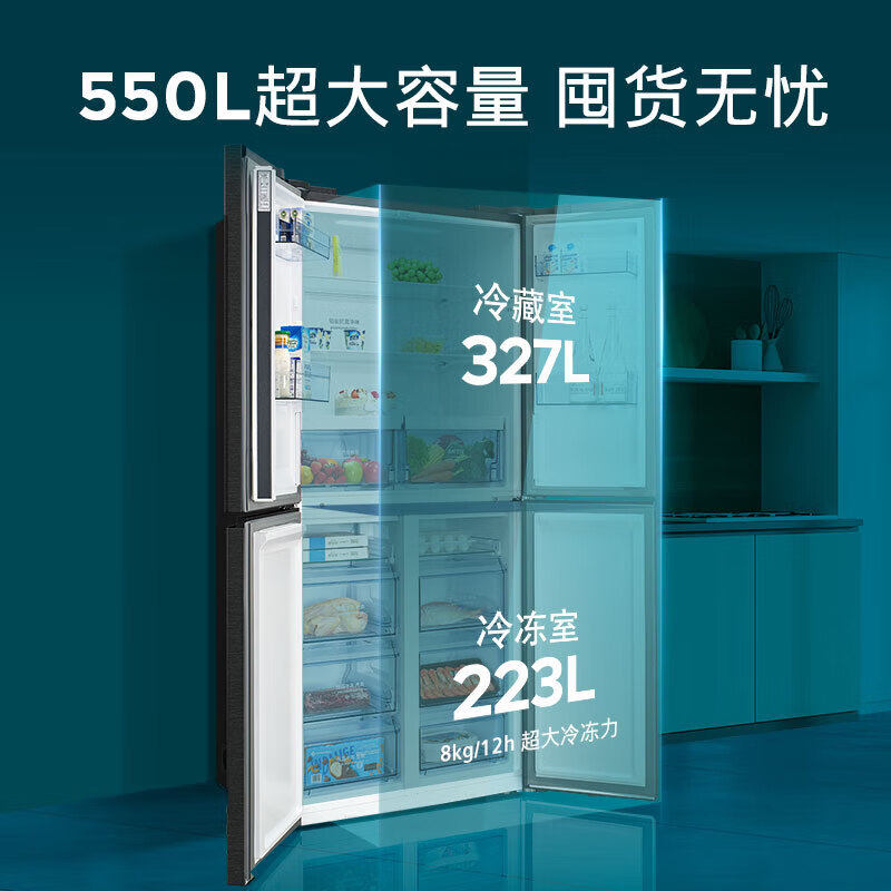 政府补贴海尔出品统帅悦己懒人520十字四门超薄大容量家用电冰箱