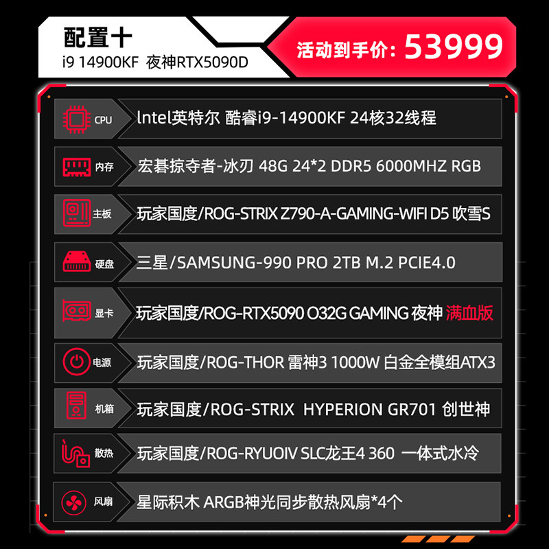 华硕ROG全家桶i9 14900KF RTX5080/5090夜神显卡AI游戏直播主机